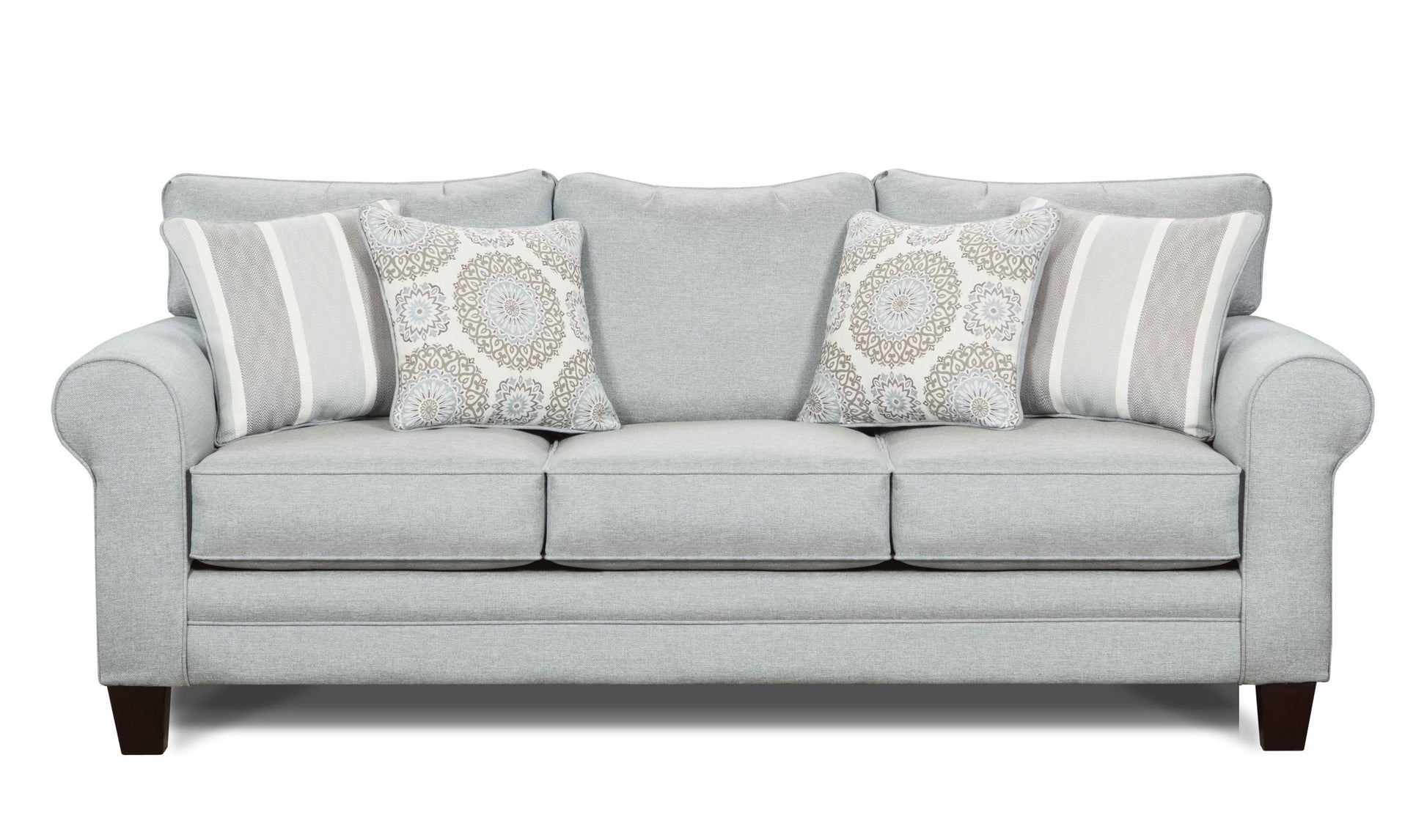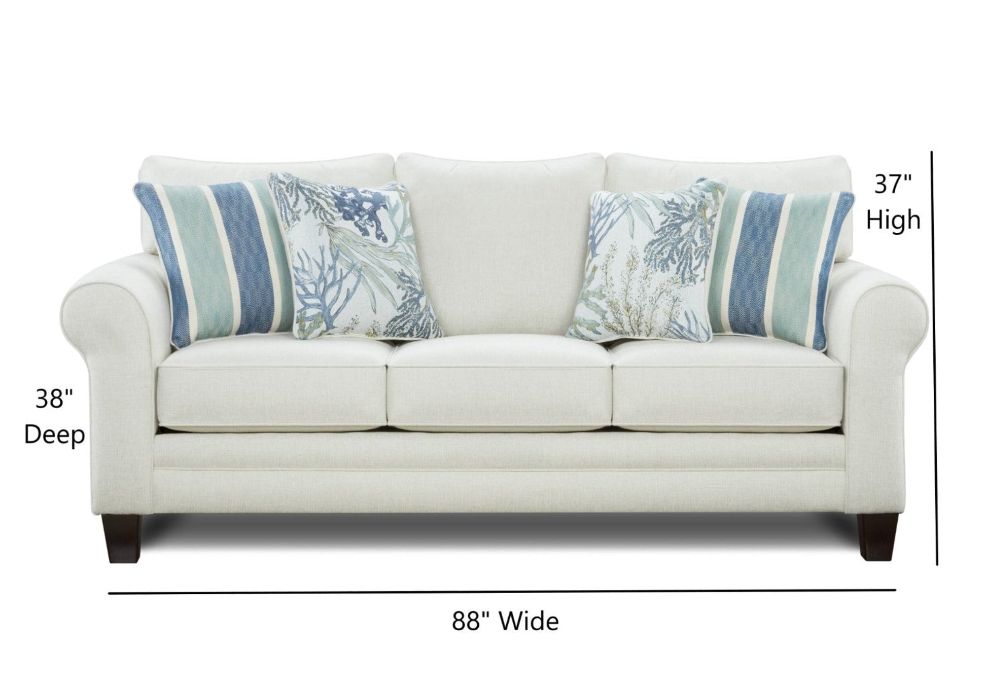 The Grande Glacier Sofa Sleeper is a very coastal styled sofa with two pairs of pillows and a coffee finish tapered leg. It also features rounded arms with loose reversable inside back cushions and loose, reversable box border welt seat cushions. The reversable cushions not only prolong the life of the fabric, but also the life of the seat cores. With two sets of pillows, you can use all four together or mix and match to create different looks and feels. The 100% Polypropylene Olefin fabric is also Revolution making it the most stain resistant, durable and easily cleanable materials ever sold.