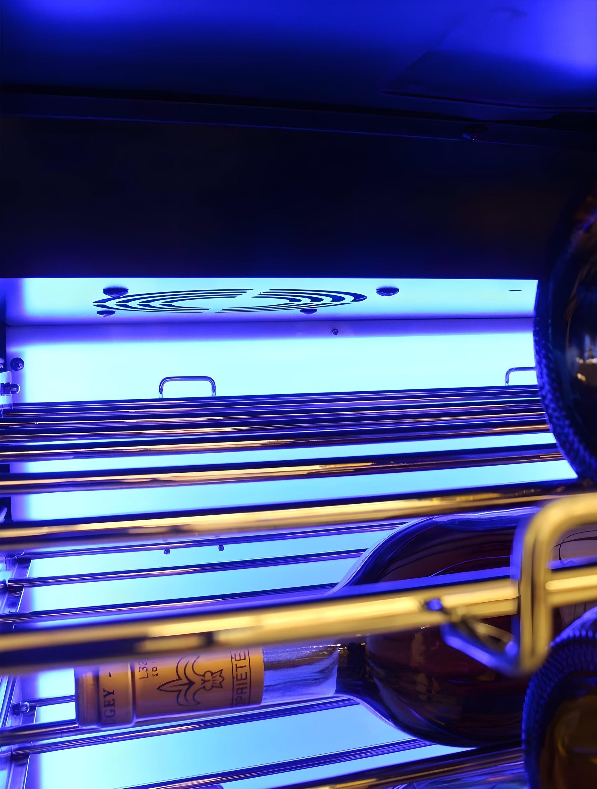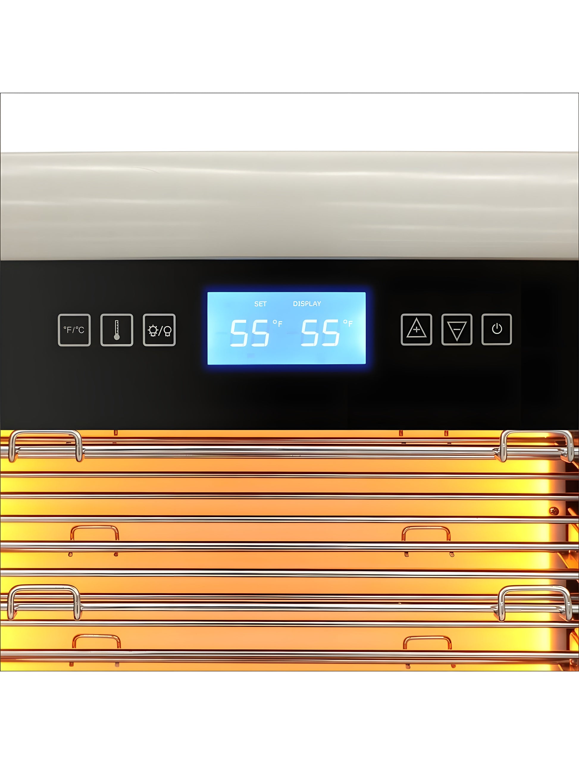 • Patented interior Backlit (baklīt) panel: Heliotrope, Amber, and Vinotemp BioBlu back-lit (U.S. Patent No. D868,849 S)