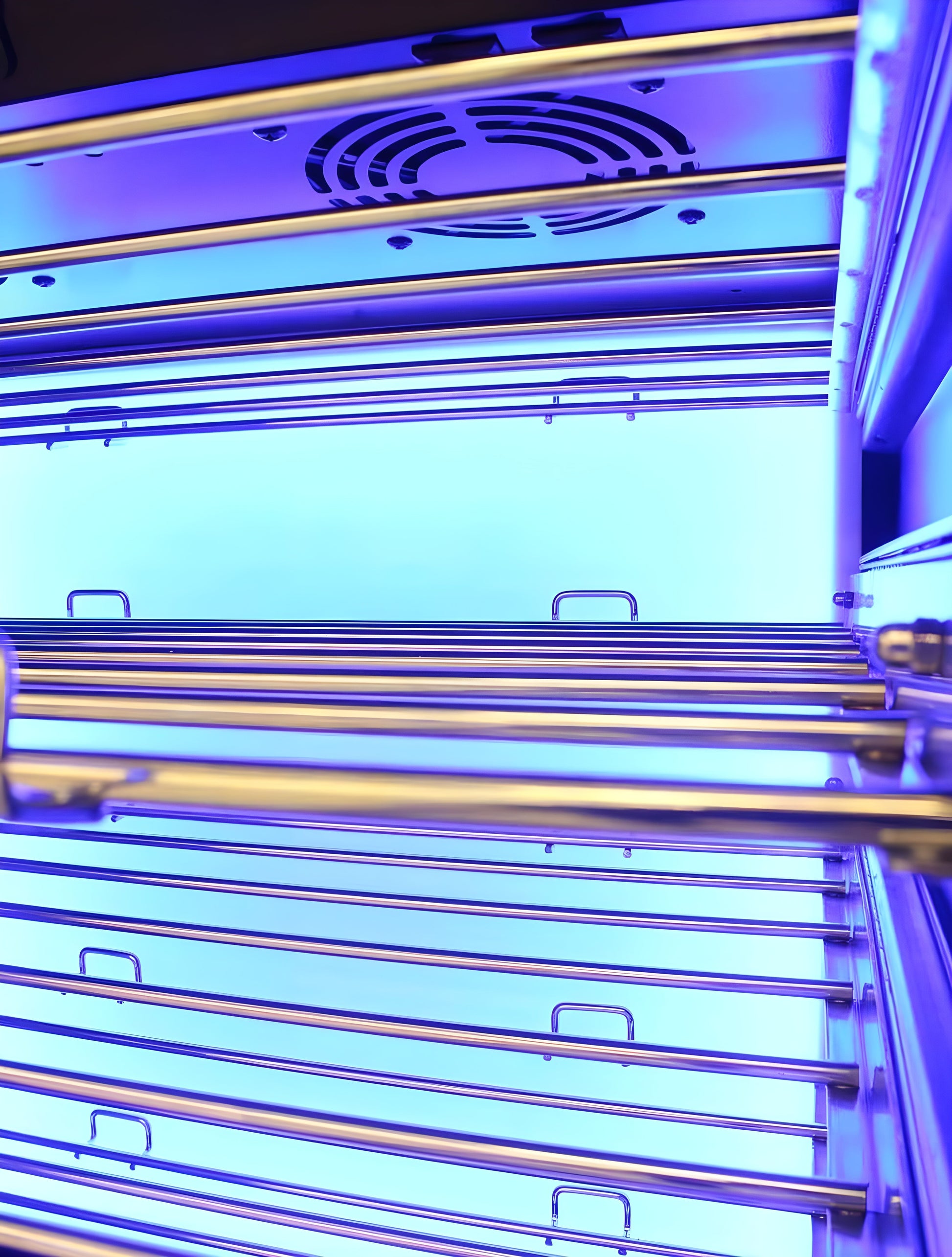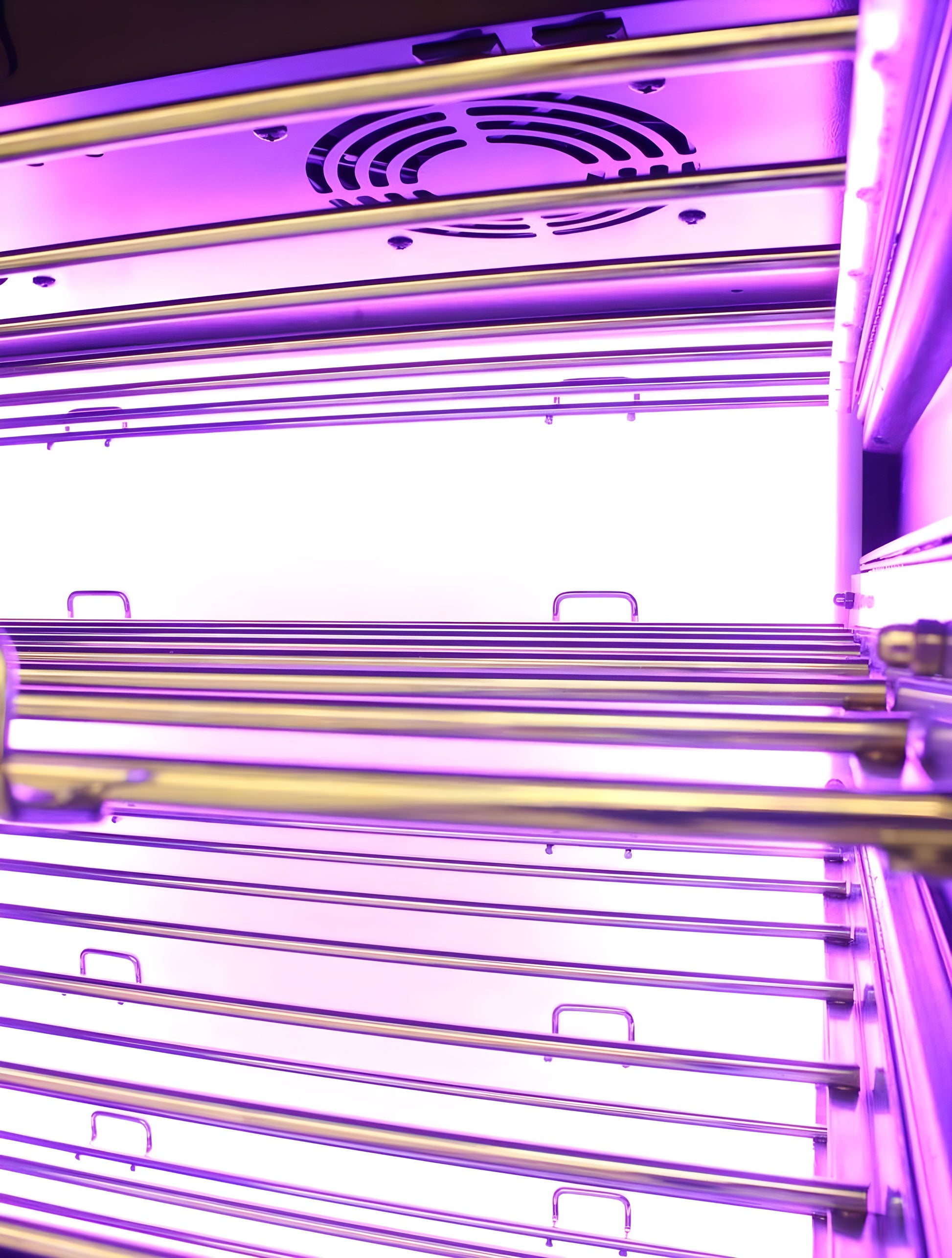 • Patented interior Backlit (baklīt) panel: Heliotrope, Amber, and Vinotemp BioBlu back-lit (U.S. Patent No. D868,849 S)