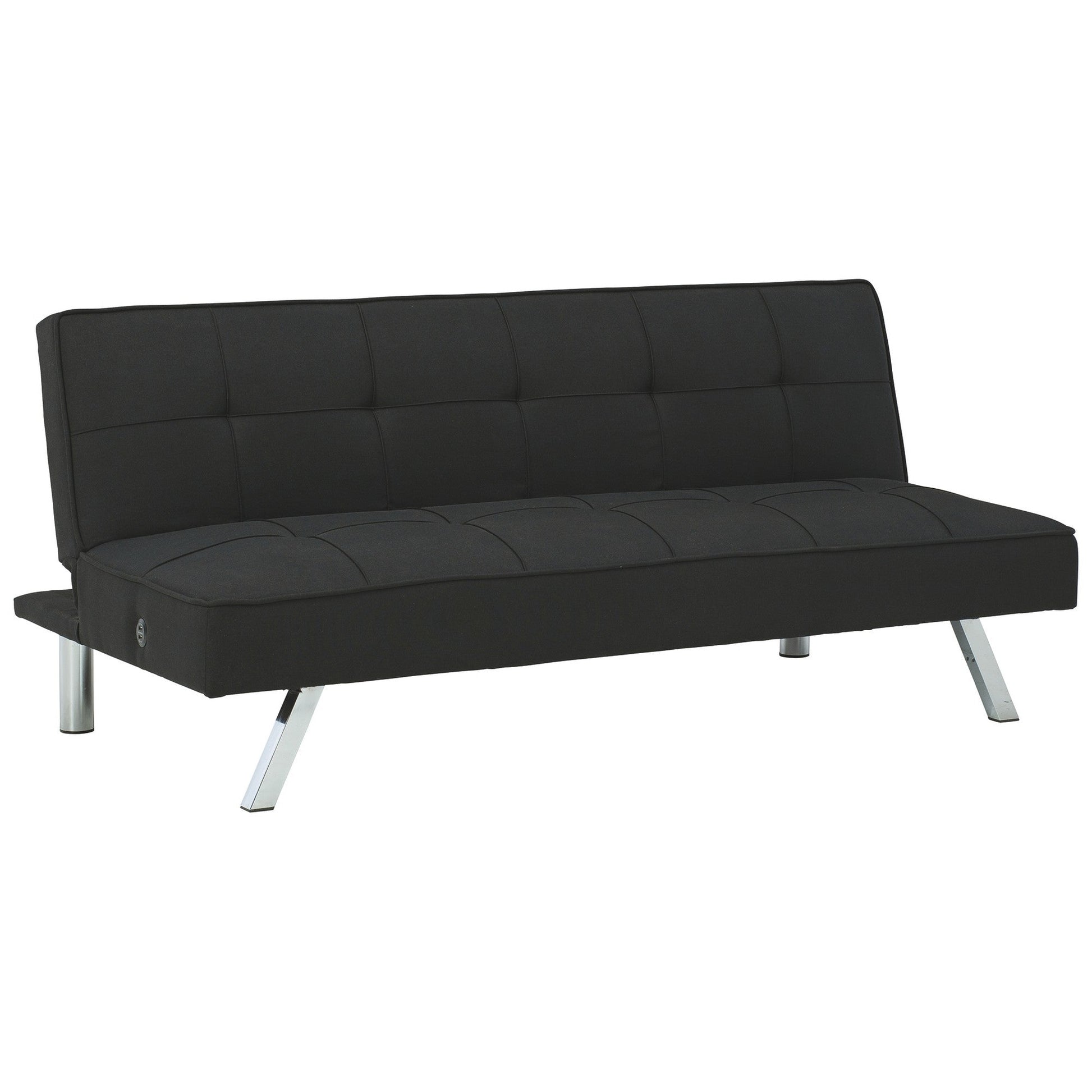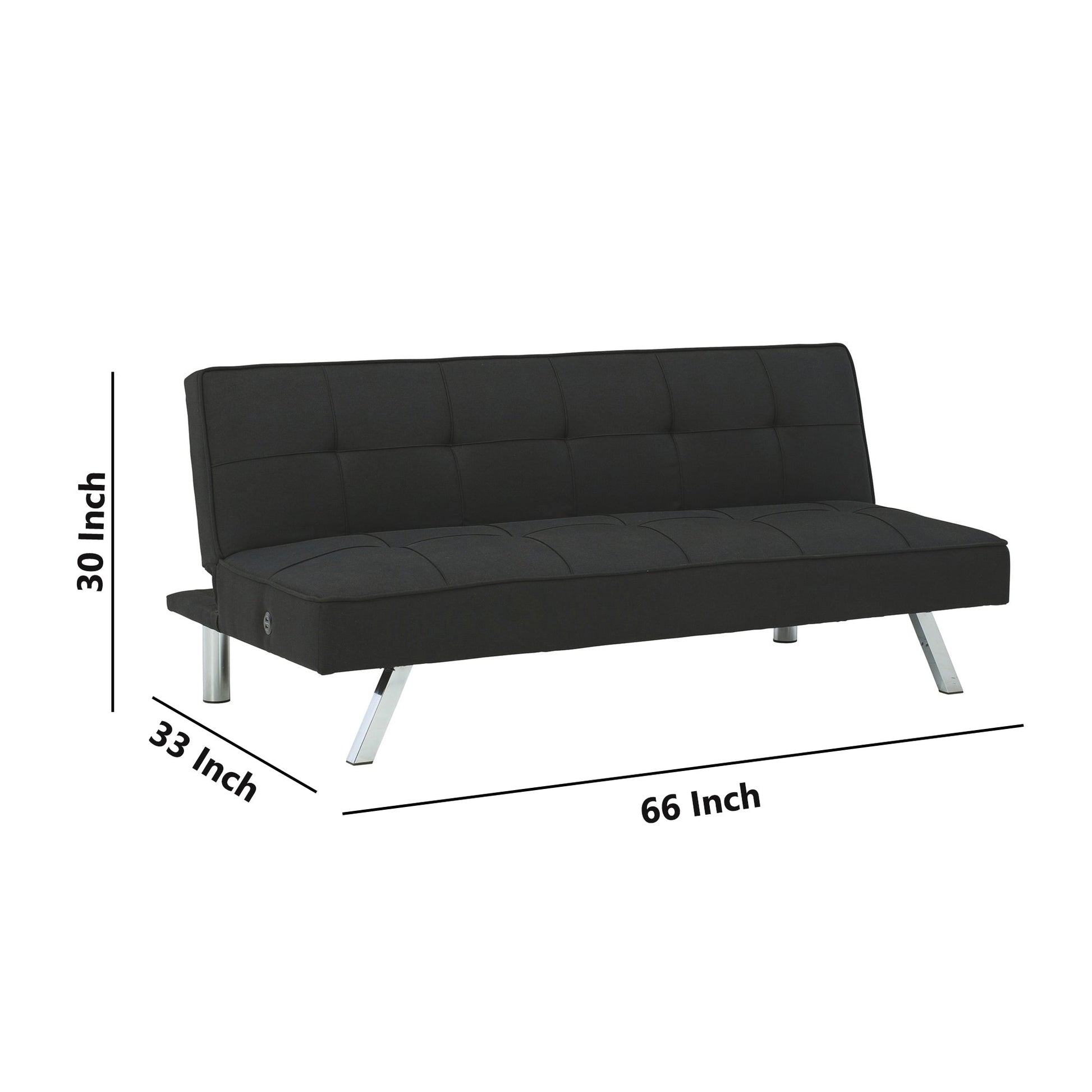 A perfect piece for compact spaces, this Flip Flop Armless Sofa will infuse contemporary elegance in your living room. Upholstered in black fabric, it showcases beautiful box tufting details complemented with foam cushioning. It is easily convertible from a sofa to a futon and comes with 2 USB ports to keep your gadgets running.