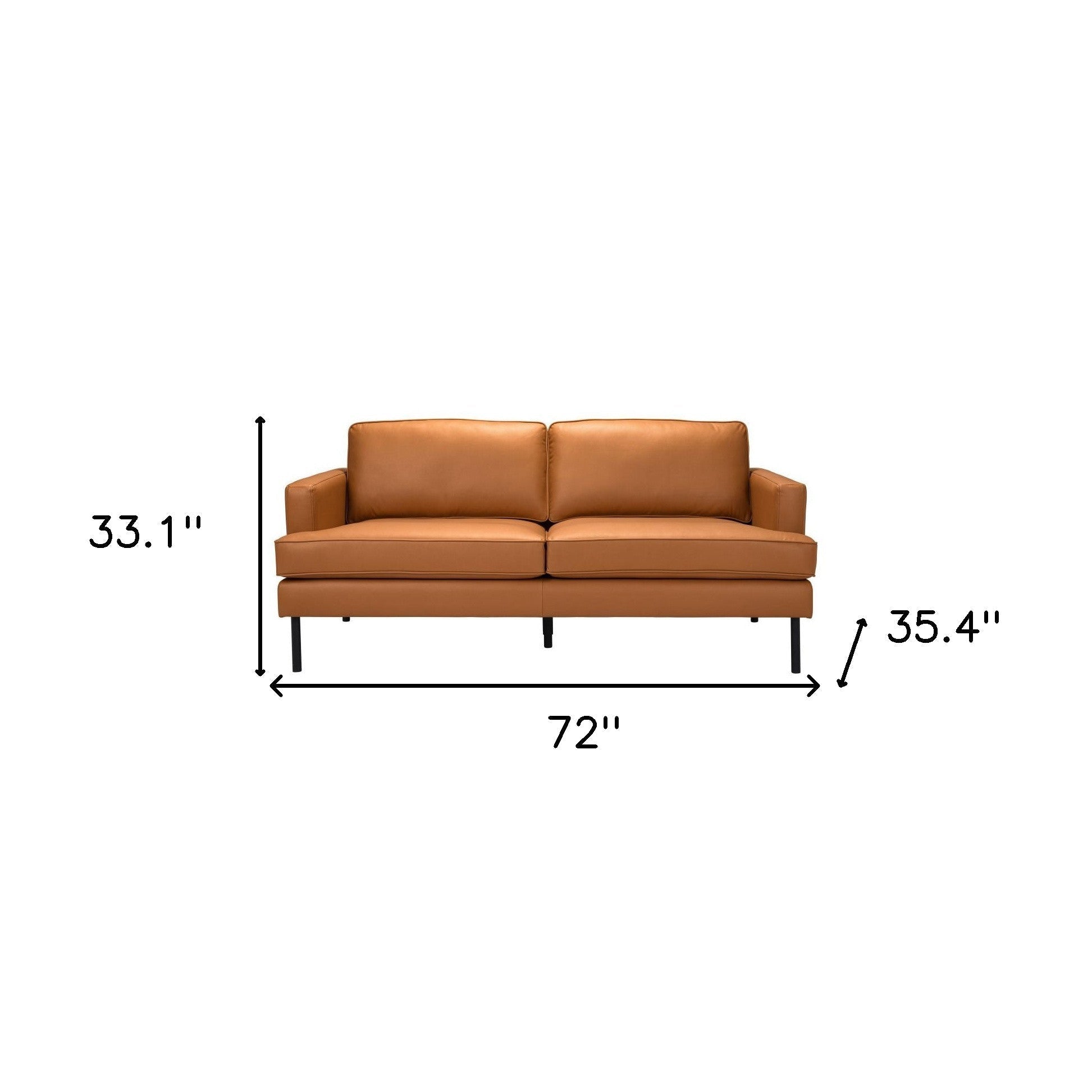 Transform your home's interior with this luxurious 72-inch brown polyester sofa with black legs. Solid colors give you lots of decorative options and are easy to work into your decor scheme. Square arms offer a comfy place to rest. Black metal legs effortlessly elevate the room and add a touch of contemporary design. A great showpiece for your room, this sofa is a must have. 33.1-inch H x 72-inch W x 35.4-inch D