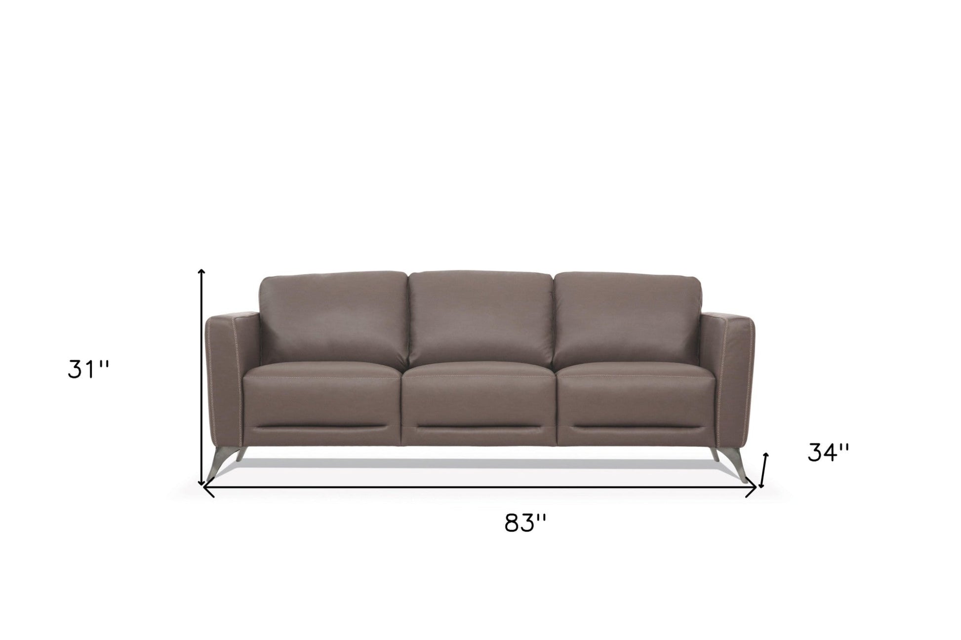 An interior designer's dream, this buttery soft high grade leather 83-inch taupe leather sofa with black legs will bring just the right touch to your space. The premium leather used makes your lounging luxuriously comfortable and adds an elegant appeal to your space. Solid colors give you lots of decorative options and are easy to work into your decor scheme. Sinuous springs construction gives this piece strong support and makes it comfortable to sit even for long periods of time. Square arms offer a comfy place to rest. Built to last, this sofa will be a great centerpiece for your room. 31-inch H x 83-inch W x 34-inch D