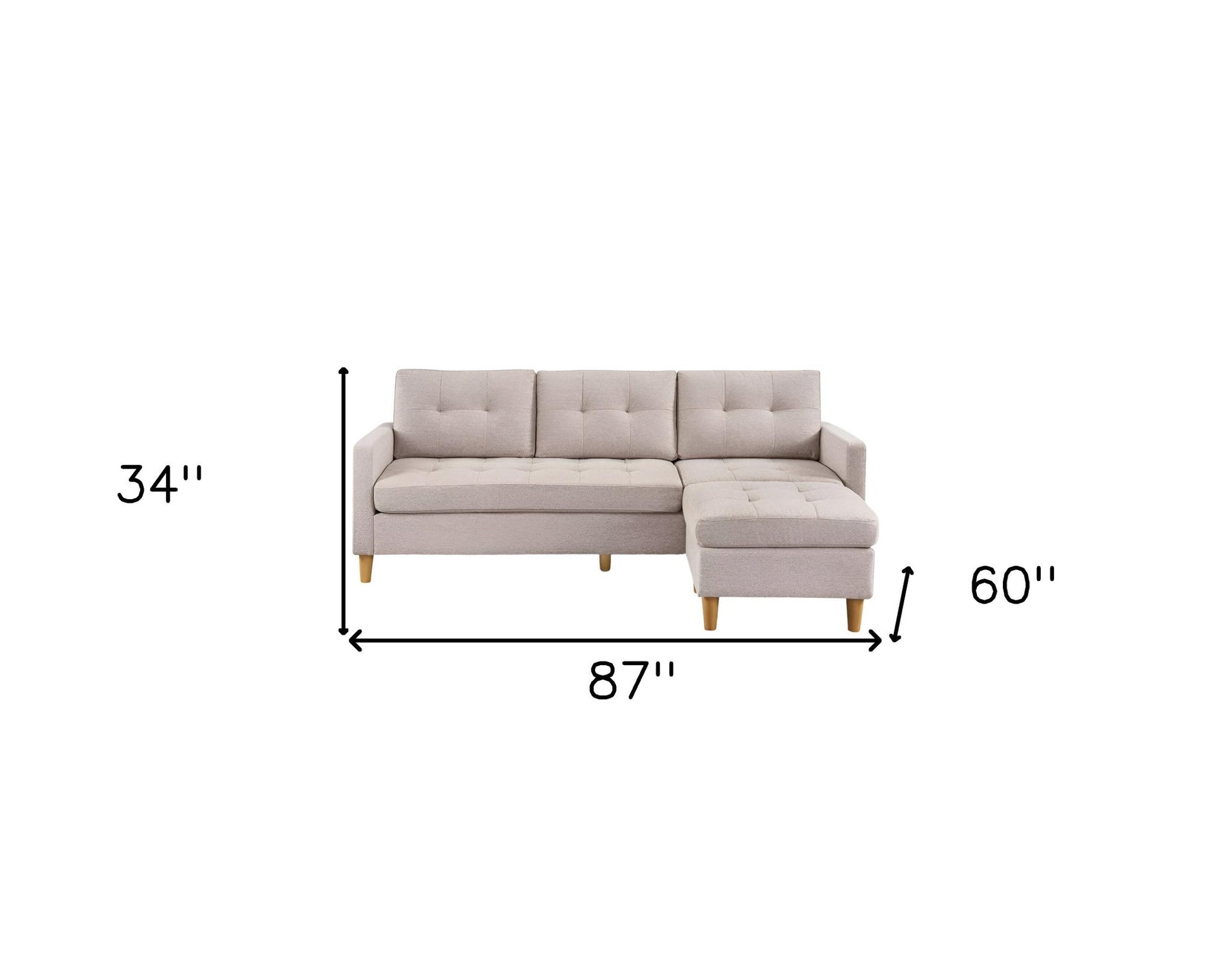 Add an air of fashion to your space with this fabulous 87-inch beige polyester blend sofa with ottoman with natural legs. This solid color standard is made from soft, sturdy, and resilient polyester blend that is a good option for families and in frequently used seating areas. Solid colors give you lots of decorative options and are easy to work into your decor scheme. Pocket spring construction gives this piece strong support and makes it comfortable to sit even for long periods of time. Removable back cushions make this sofa easy to manage. Comes complete with a coordinating ottoman to rest your feet. The ottoman can also be used as additional seating option if needed. Square arms offer a comfy place to rest. The tufted stitching pattern adds visual interest and fine designer detailing. Natural solid wood legs effortlessly elevate the room and add a touch of contemporary design. A great showpiece for your room, this sofa is a must have. 34-inch H x 87-inch W x 60-inch D