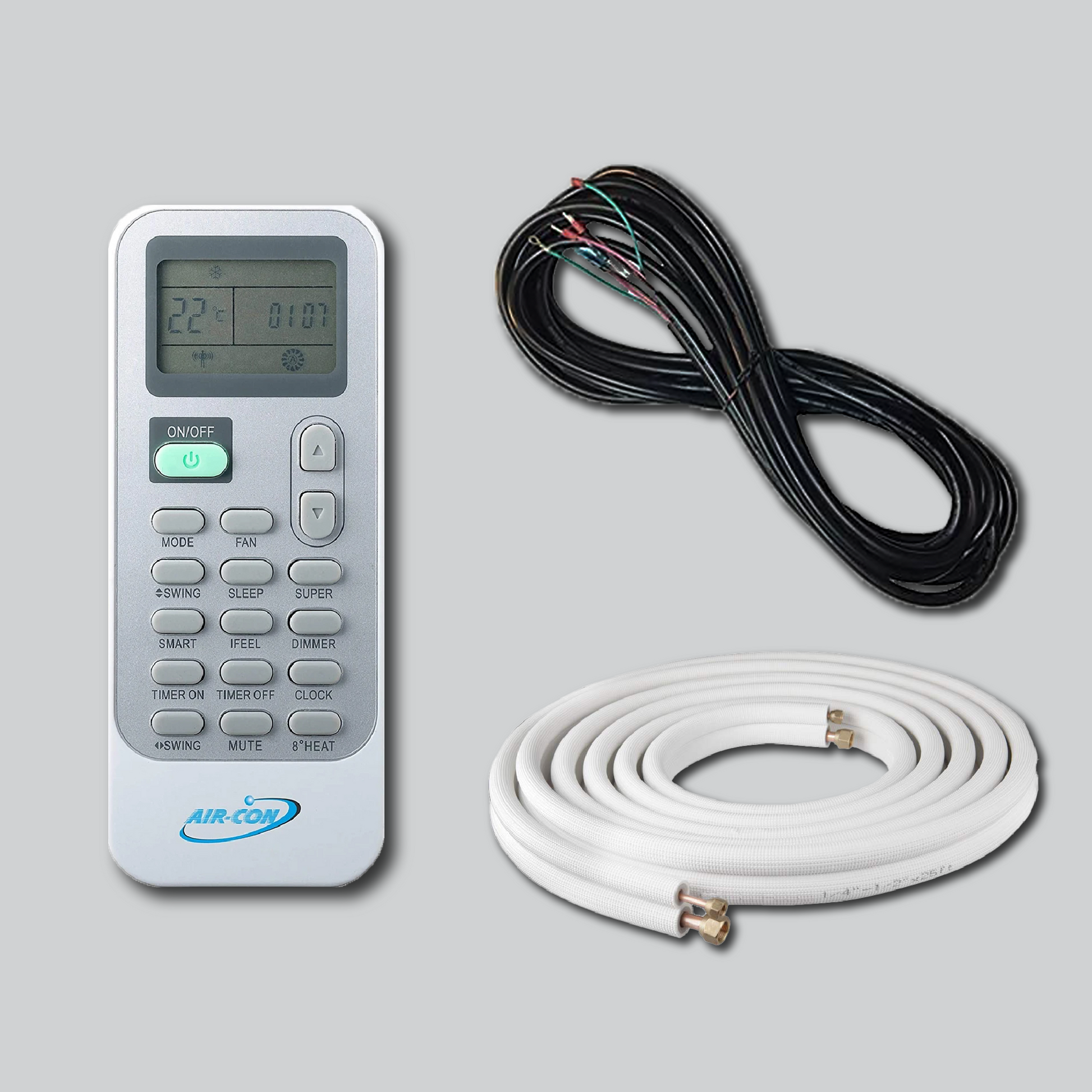 Comprehensive Installation Kit: Includes indoor and outdoor units, remote control, 15' copper lineset, and 15' signal and power cables, simplifying setup.