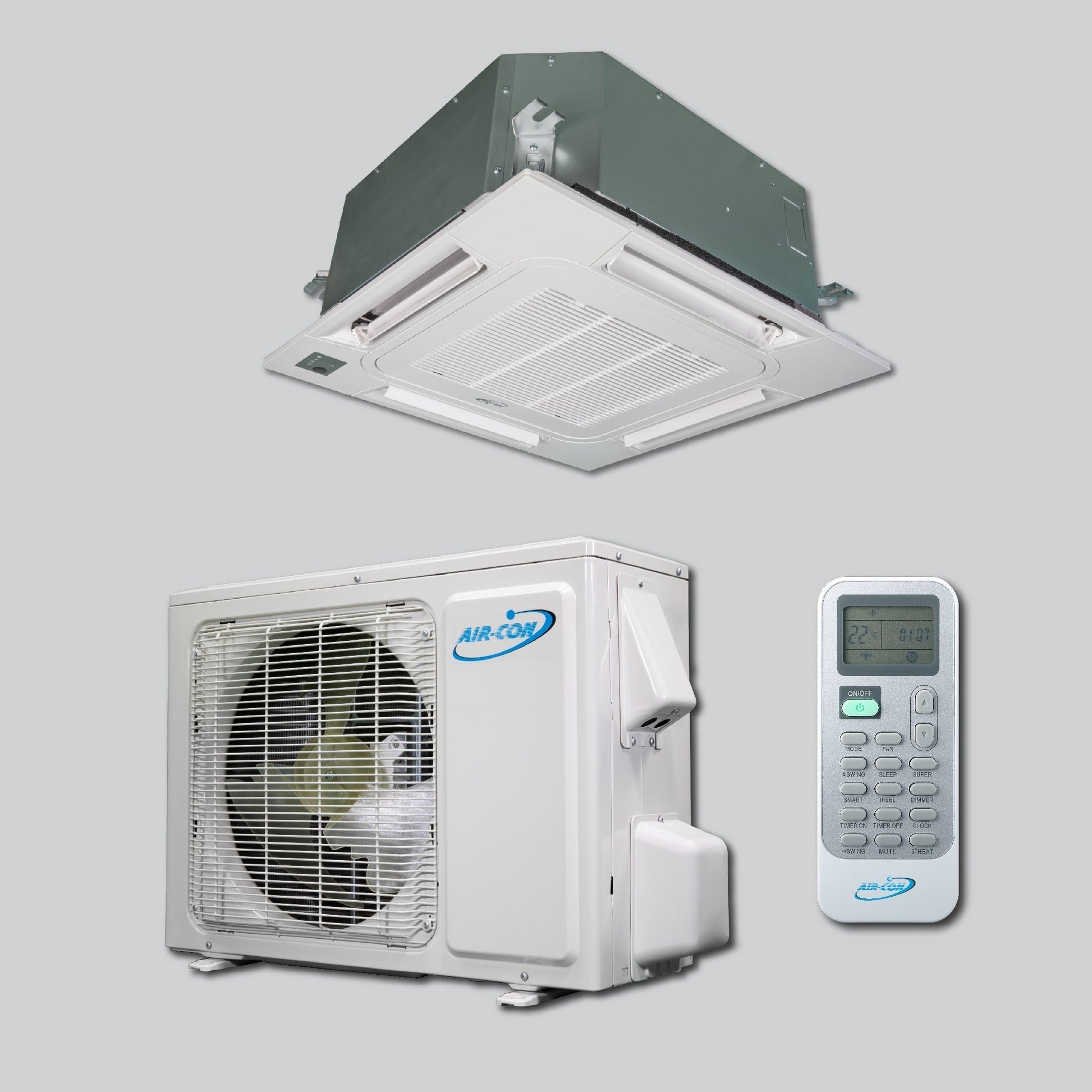 Enjoy year round comfort with the ability to heat or cool your room or space with Air-Con Sky Pro 12000 BTU cassette type air conditioner.