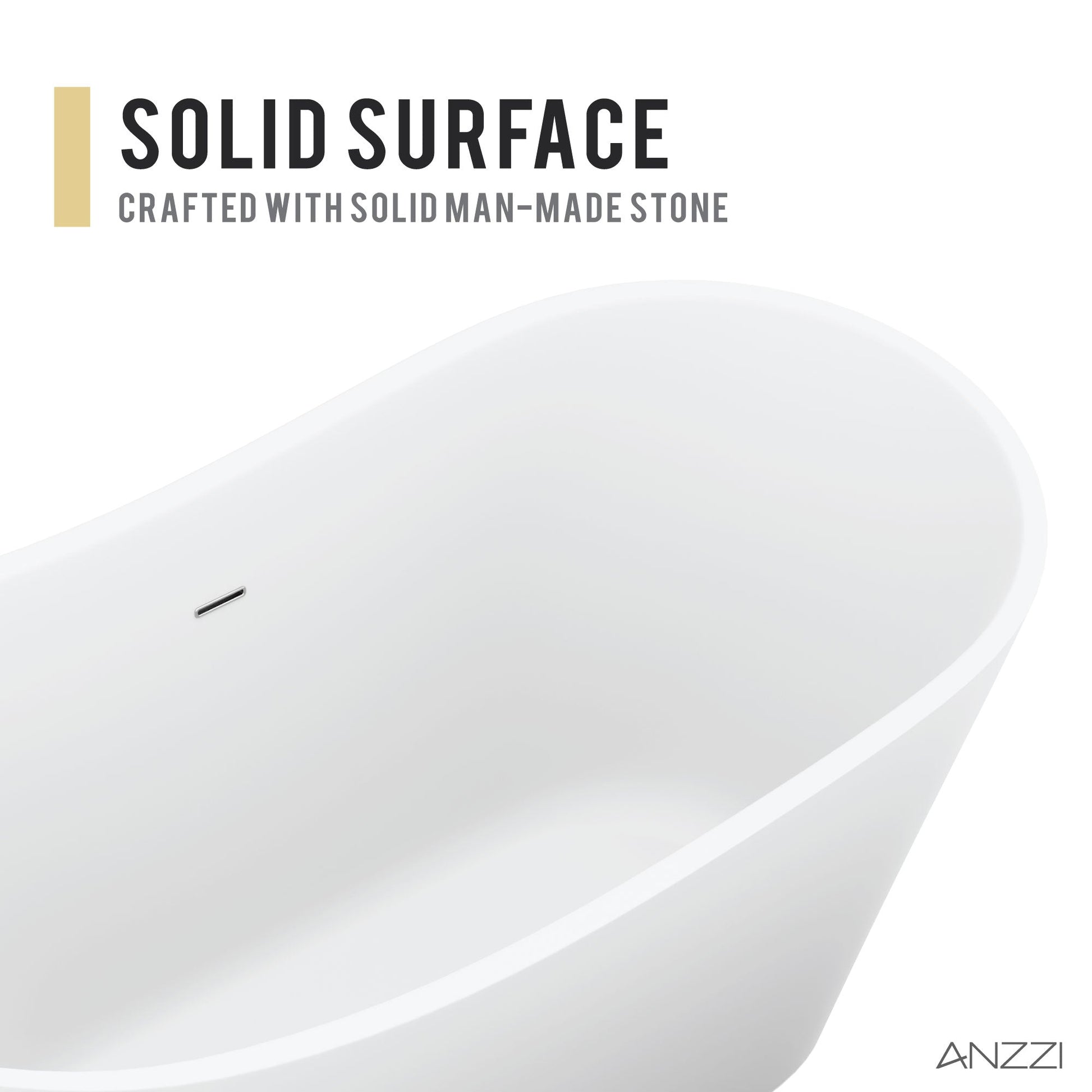 Bring an oasis home with our ANZZI Tuasavi Solid Surface freestanding soaking bathtub. Ergonomically oval designed to cradle the body's form for maximum comfort this tub is styled with a classic and contemporary flair. Relax and drift away while submerged in your personal spa pool.