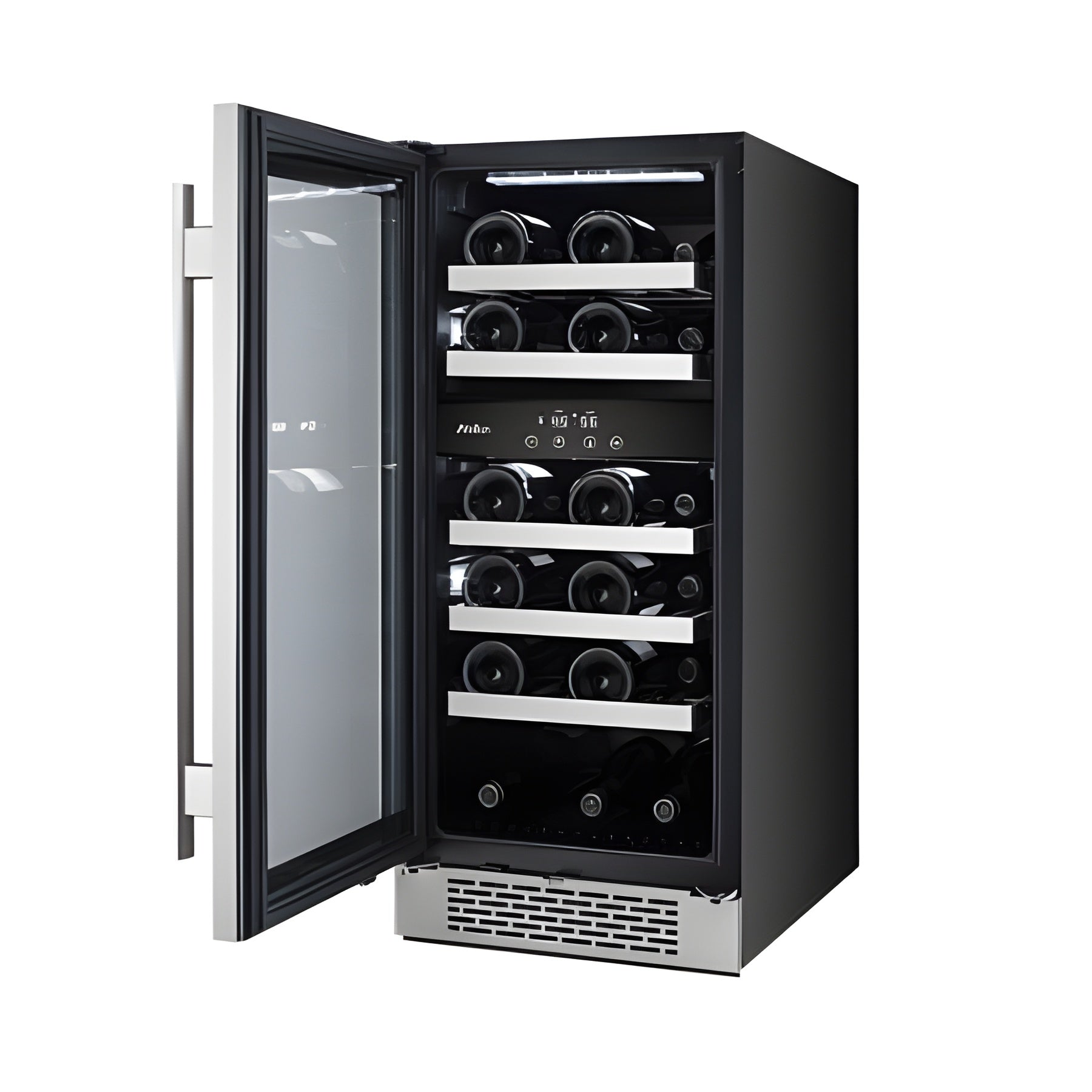 A: A compact yet powerful dual-zone wine cooler with a 23-bottle capacity and a left-swing door, perfect for wine enthusiasts who need precise temperature control for both red and white wines.