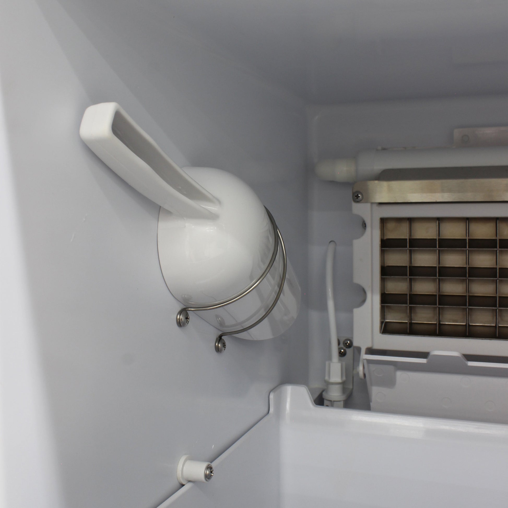 A: Yes, it features an integrated storage bin to keep the ice cold and ready for use.