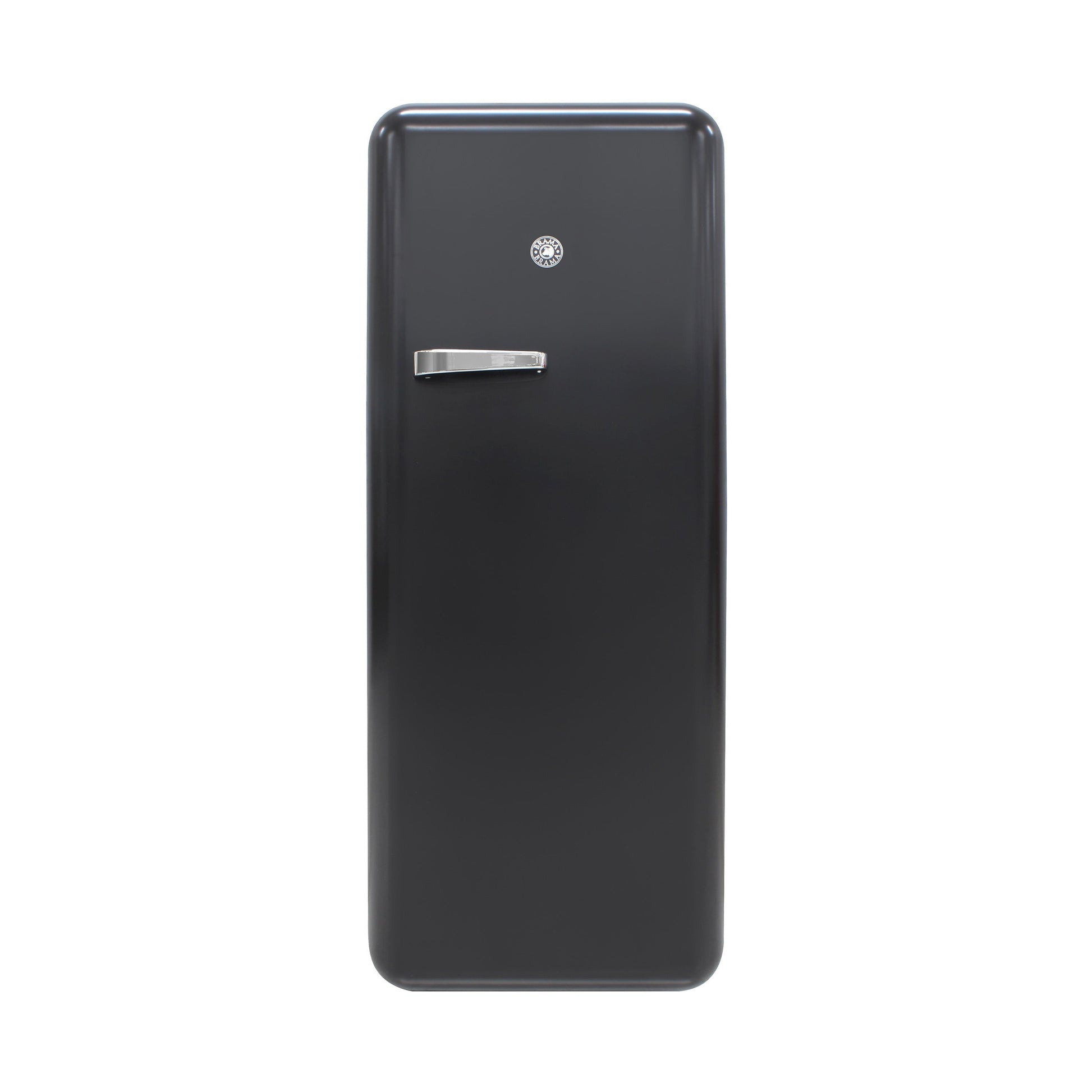 Keep all of your goods at the perfect serving temperature with the Brama by Vinotemp Retro Refrigerator. This retro style refrigerator features a top freezer, interior light, open storage with four pull-out shelves including one metal wire rack, bottom bulk storage and four rows of small storage behind the door. The black fridge has a rounded exterior with solid steel door, giving it a retro look with all the benefits of a modern appliance. This stylish retro fridge with freezer makes a perfect addition to any space. Covered by the Vinotemp One-Year Limited Warranty.Keep all of your goods at the perfect serving temperature with the Brama Retro Refrigerator. This unit features a top freezer, interior light, open storage with 4 pull-out shelves including one metal wire racking, bottom bulk storage, and 4 rows of small storage behind the door. The black, rounded exterior with solid steel door gives a retro and modern look and makes a perfect addition to any space.