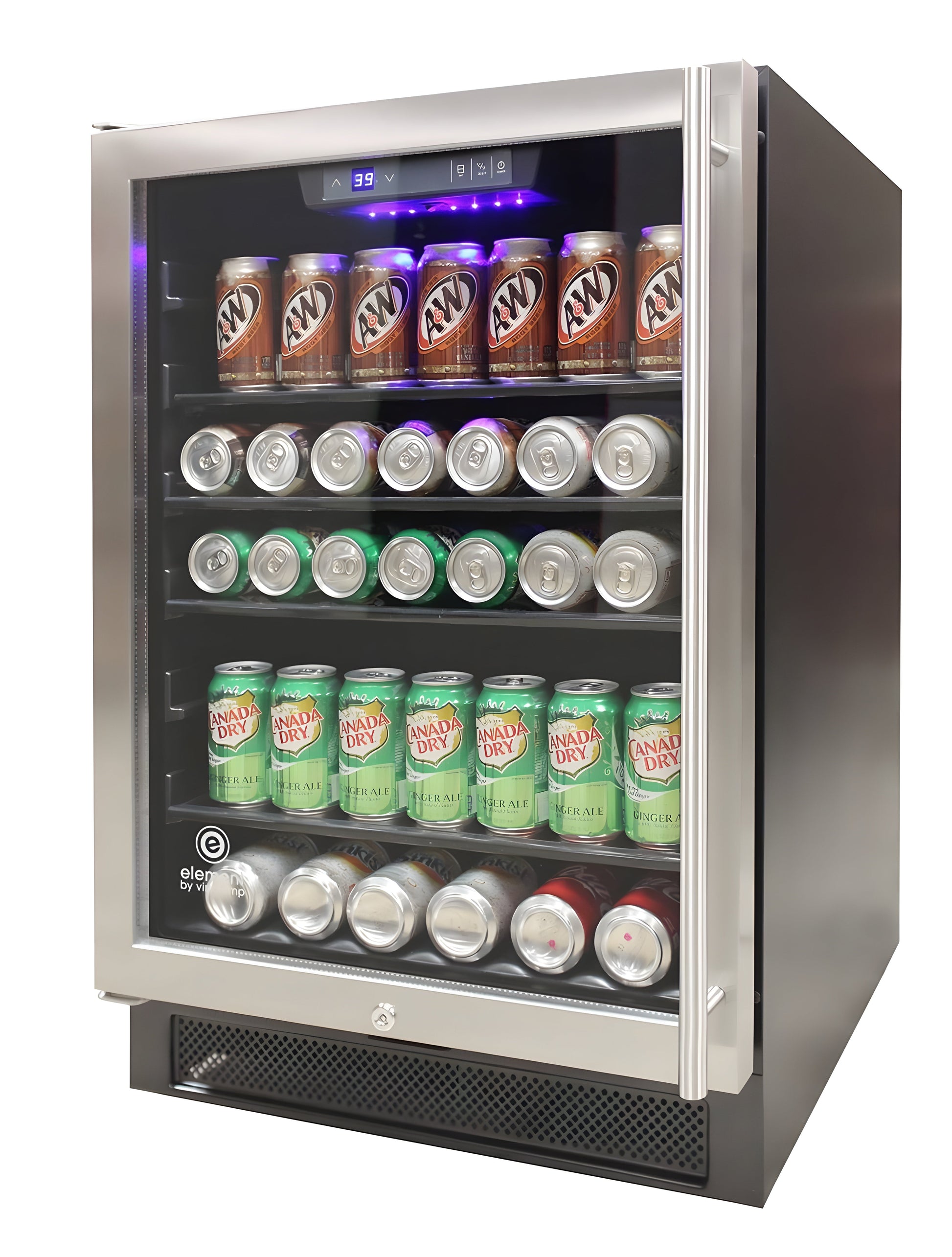 The Connoisseur Series 46 Single-Zone Beverage Cooler is an essential for those who love to entertain. Equipped with front exhaust, this beverage cooler is designed to fit seamlessly in existing cabinetry. The easy to use digital control panel makes adjusting the temperature simple while providing peace of mind that your beverages are always ready to be enjoyed. The blue LED lighting illuminates the cooler’s contents behind a seamless stainless steel door, making this beverage cooler an aesthetically pleasing addition to any room. Sliding tempered glass shelves holds approximately 161 12 oz. cans. Beautiful and functional, this beverage cooler is sure to be the centerpiece of get-togethers for years to come.