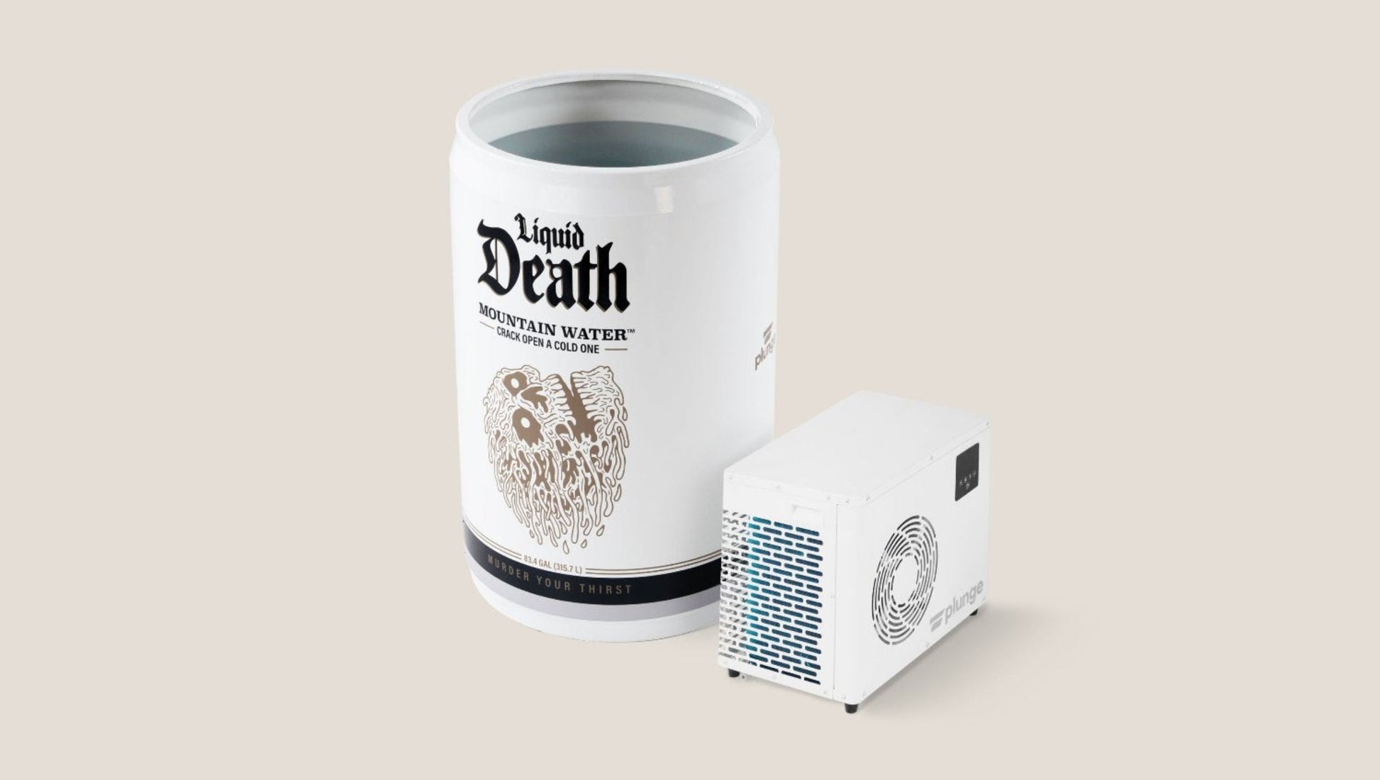 A: A limited-edition upright cold plunge tub created in collaboration with Liquid Death, designed for outdoor cold therapy.