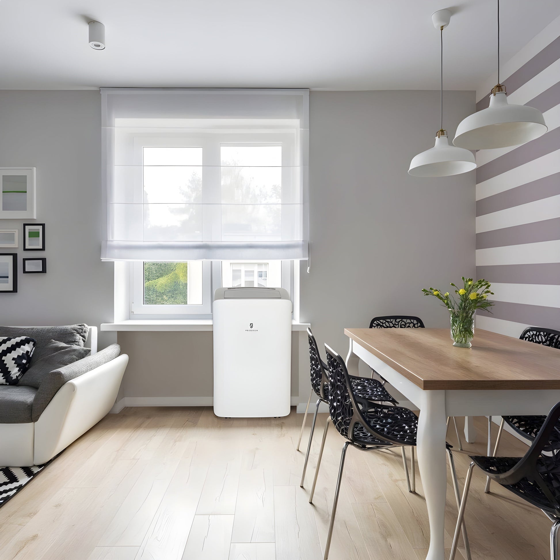 A: It efficiently cools or heats spaces up to 550 sq. ft., ideal for bedrooms, offices, or small apartments.