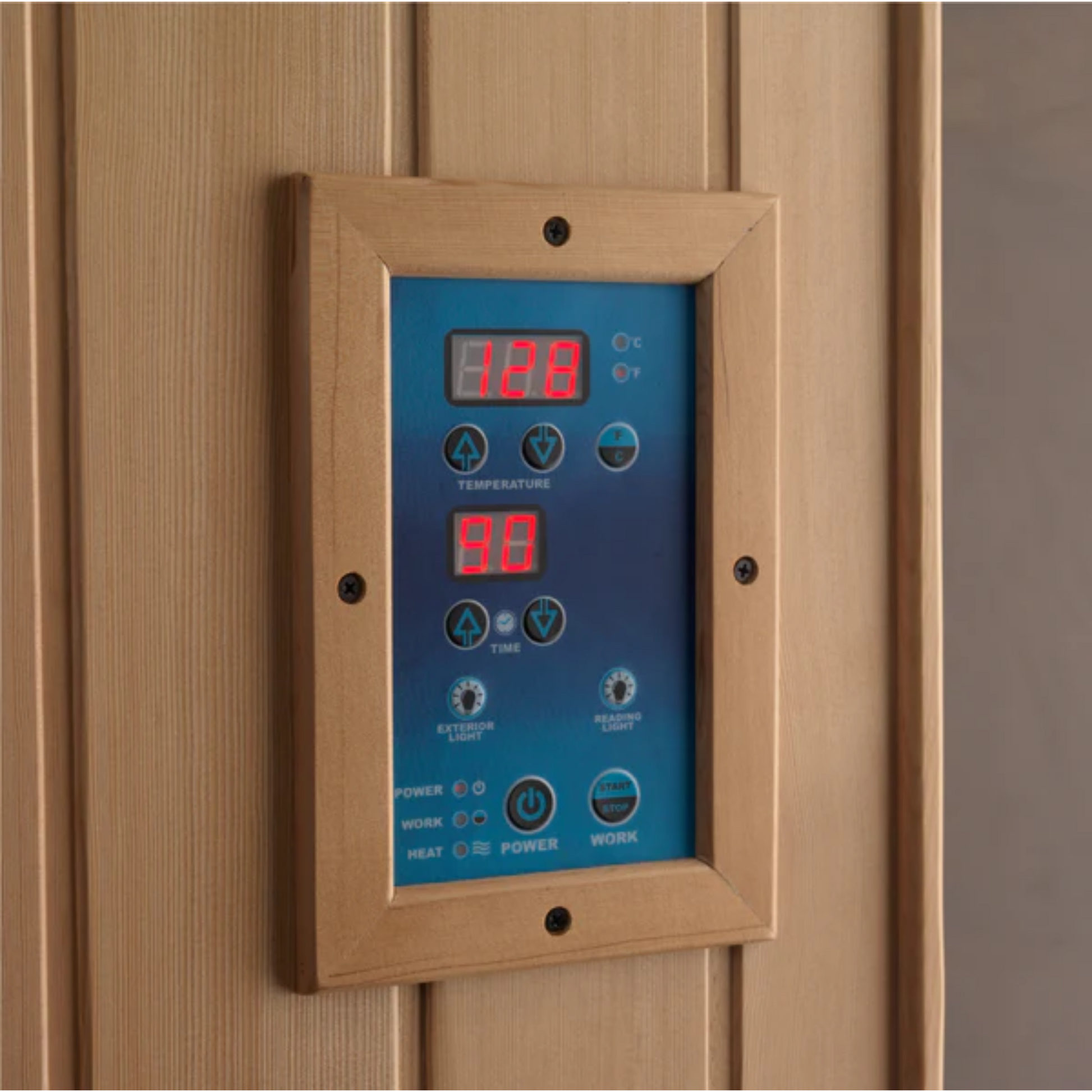 Indulge in entertainment and easy control. The interior LED control panels ensure an intuitive and user-friendly sauna experience. Tune in to your favorite sounds through the FM radio with Bluetooth and MP3 auxiliary connections, all delivered through built-in speakers.