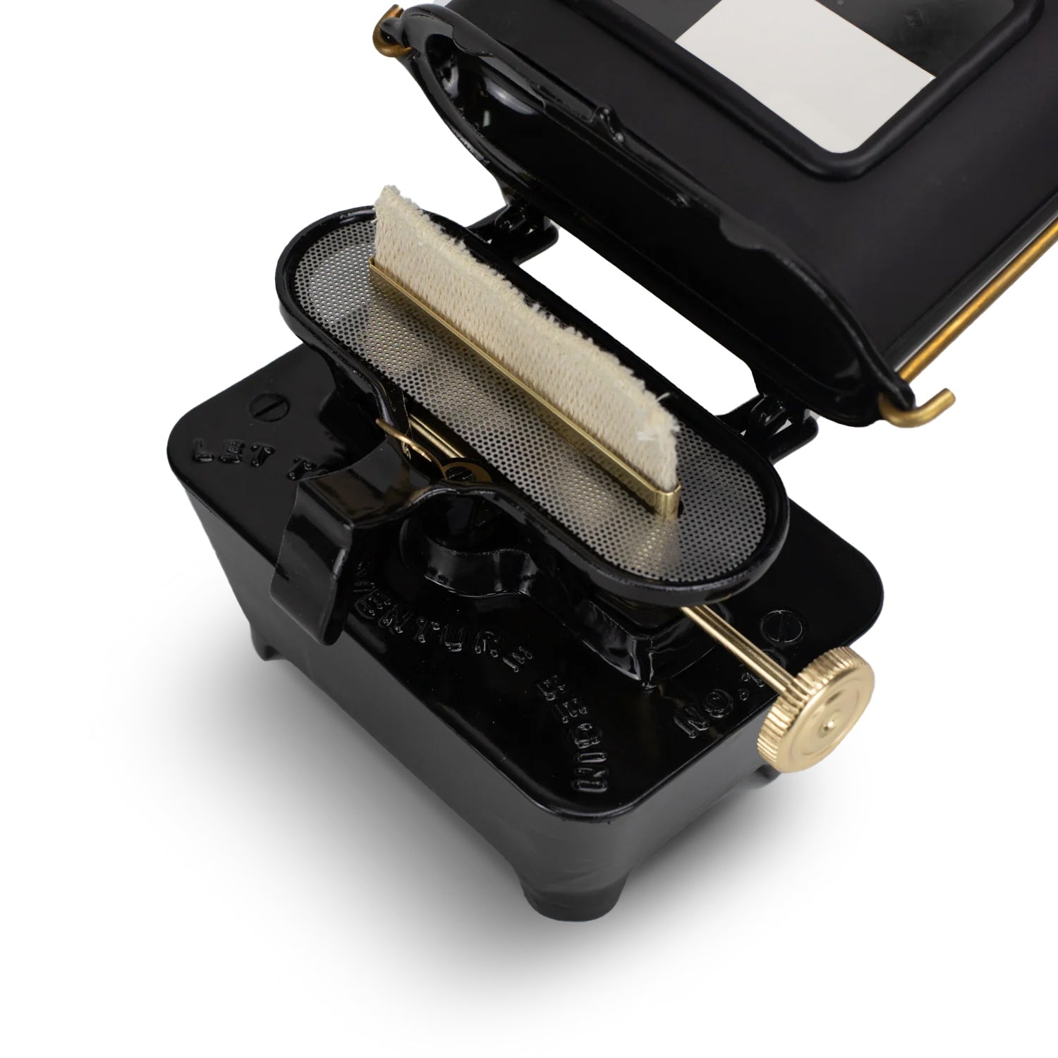 Inspired by the iconic "sad" iron stoves of the early 19th century, the Iron Camping Cooking Stove brings warmth, ambiance and timeless tradition of yesteryear to your campsite.Careful craftsmanship shines through in every detail, from the smooth cast iron to the ornate brass accents. Experience the mesmerizing glow and gentle crackle of real fire minus the fuss of open flames.The Iron Camping Stove is an experience, a conversation piece and an ode to the past. Built for those outdoor enthusiasts who appreciate quality, craftsmanship and a touch of nostalgia.