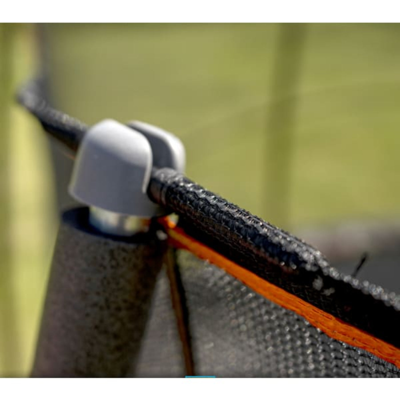 • This enclosure system features 7 black foam padded poles. Each pole is curved at the top to keep the enclosure net away from the poles for added safety while jumping. Additionally, each pole is topped with a pole cap for secure hanging net attachment.