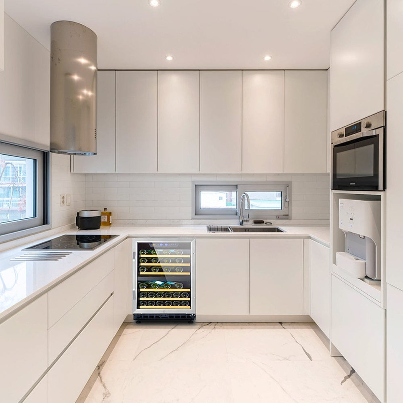 If you are not sensitive to small sounds like other household machines made, the running noise would not affect you. This built-in wine refrigerator would make little noise when the compressor is running, which is less than 43 db. After the compressor finishes the cooling process, the wine cooler fridge would be as quiet as usual refrigerators.