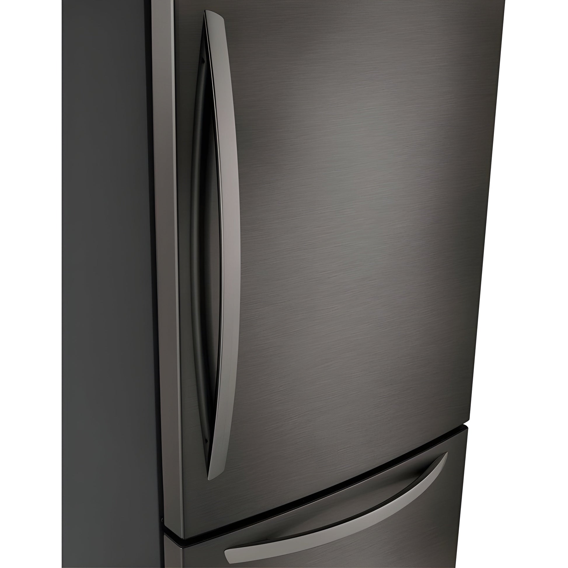A: This spacious 26 cu. ft. bottom freezer refrigerator features a sleek black stainless steel design, providing ample storage, advanced cooling, and easy access to fresh foods.