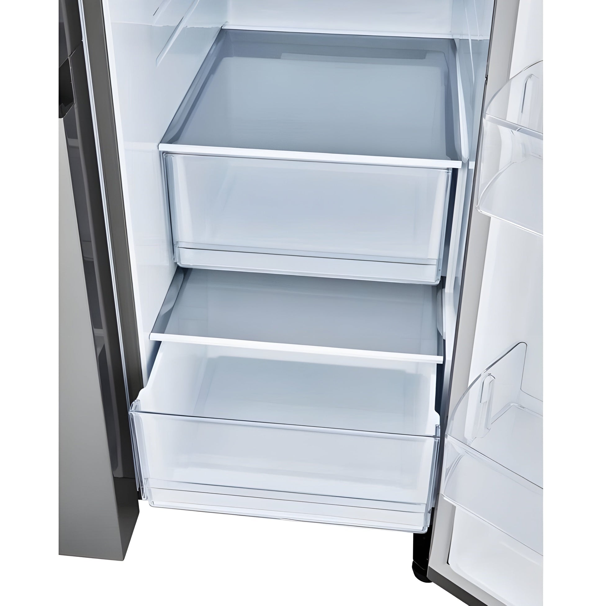 It’s easy to show off your best side with our redesigned large-capacity side-by-side refrigerator. The modern exterior includes flat panels, discreet pocket handles, and sleek touch controls—in four finishes to speak to your stylish side. For your organized side, there’s top-to-bottom shelving that keeps fresh and frozen foods in easy sight and with easy access. Stock up for the week and store it all in the generous 27-cu. ft. of space. A smooth touch dispenser delivers chilled filtered water and ice with just a light touch.