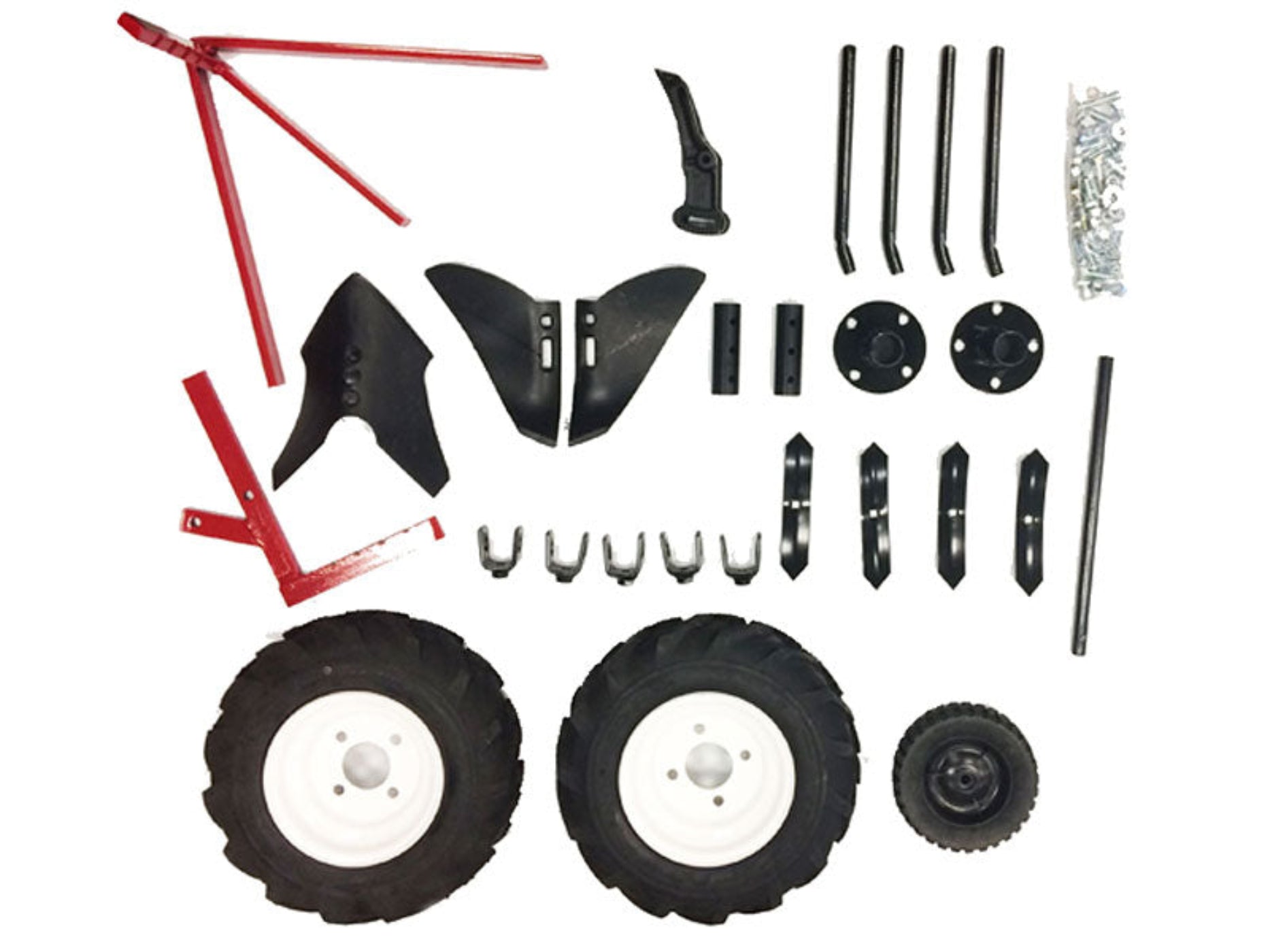 Comprehensive Accessories: Comes with 16-inch Sure Grip tractor wheels, furrow opener kit, and heat-treated slasher tines with replaceable blades for added convenience.
