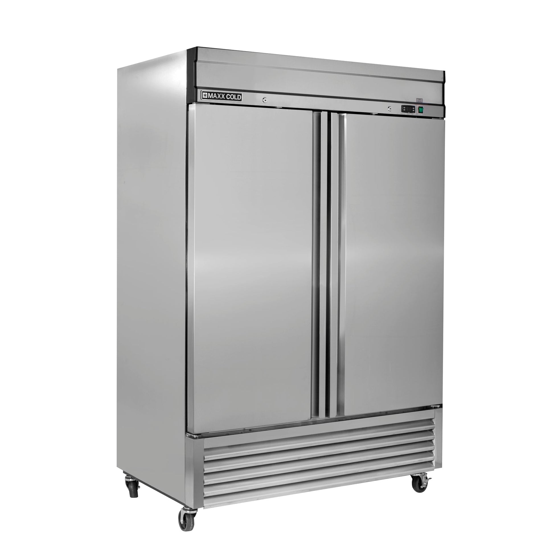 - Features: Maxx Cold Select Series Upright Freezer, reach-in, two-section, 49 cu. ft. storage capacity, bottom mount self-contained refrigeration, -10° to 10°F temperature range, digital temperature controls with LED display, automatic defrost, (6) wire shelves, (2) solid hinged doors with locks, polyurethane foam insulation, aluminum interior, stainless steel exterior, (4) 4" casters (2 with brakes), R-290a Hydrocarbon refrigerant, 1HP, cETLus, ETL-Sanitation