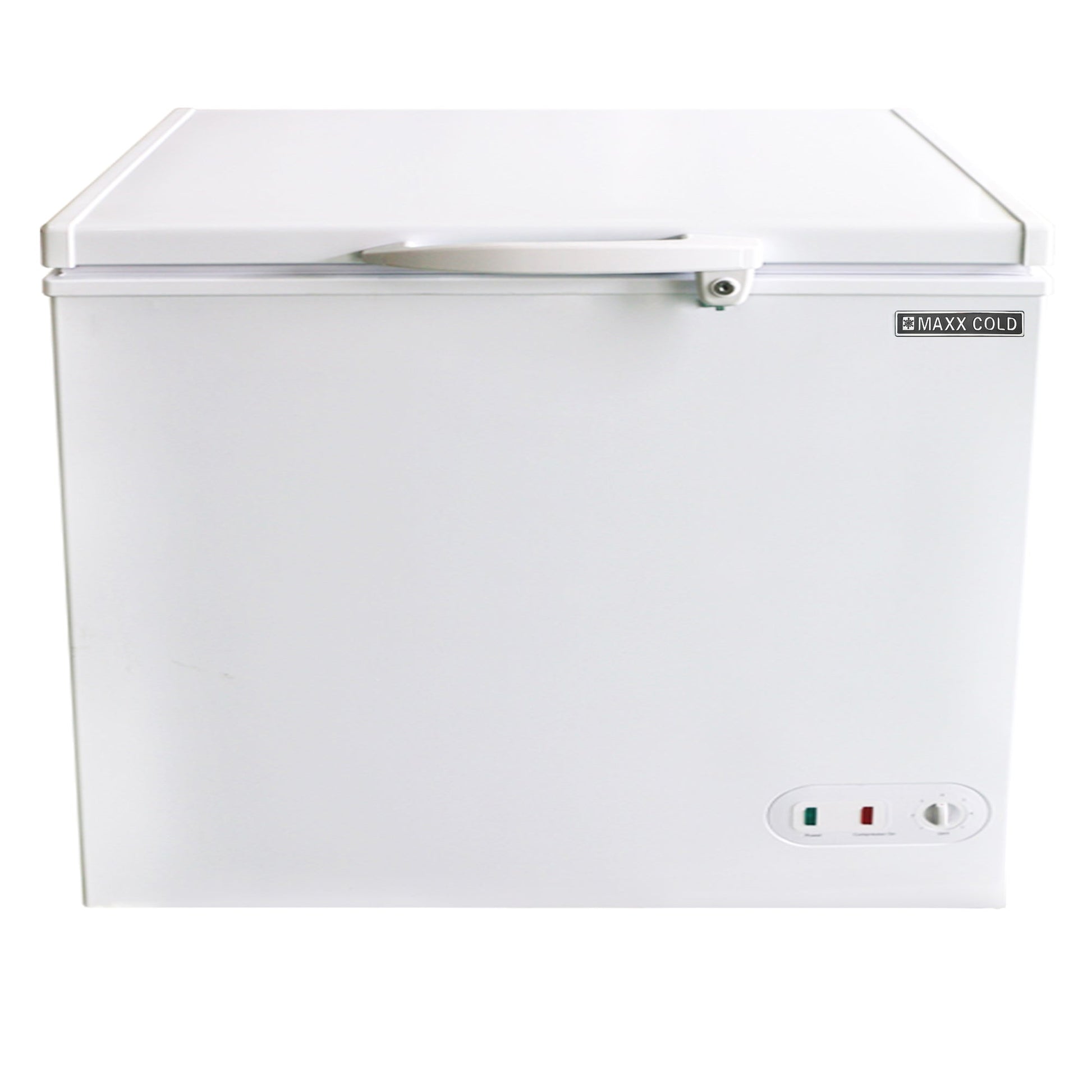 - Features: Maxx Cold Select Series Chest Freezer, 7.0 cu. ft., -11.2°F to -1°F temperature range, manual defrost, exterior temperature display, solid hinged locking lid, (1) wire storage basket, aluminum interior, white powder coated steel exterior, adjustable feet, self-contained refrigeration, R600a Hydrocarbon refrigerant, cETLus, ETL-Sanitation