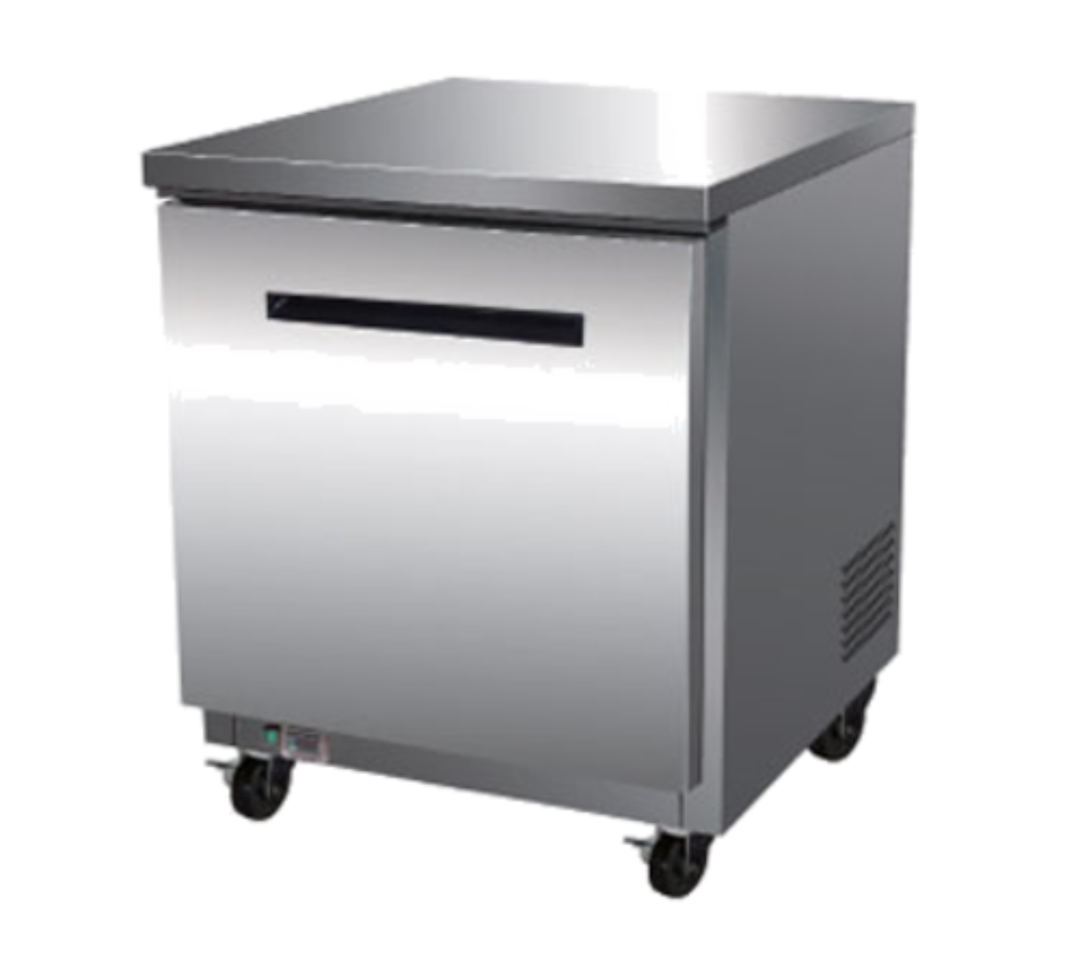 Maxx Cold X-Series 27" Undercounter Freezer, 6.5 cu. ft. storage capacity, one-section, (1) adjustable shelf, (1) solid hinged door with recessed handle, electronic thermostat & digital LED temperature display, self-contained, automatic defrost system, stainless steel exterior, painted aluminum interior, (4) casters (2 locking & non-locking), R404A refrigerant, 1/2 HP rear mounted compressor