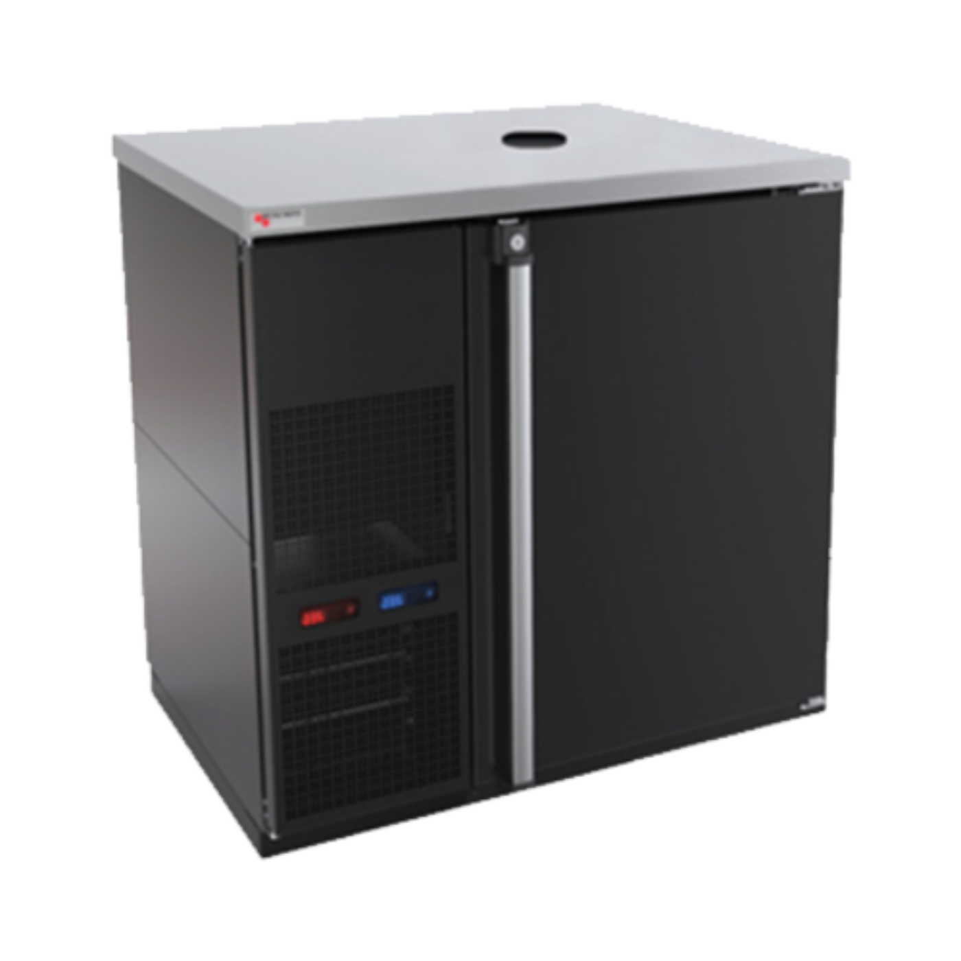 Pro-Line™ E-Series™ Dual Temperature Wine Cooler Dispenser, one-section, 36-3/4"W, self-contained refrigeration, accommodates (4) 1/6 barrel kegs, (1) hinged door with lock, (2) LED digital temperature displays, front ventilated, automatic condensate evaporator, includes (2) rear knock-out plugs for gas lines, stainless steel interior, stainless steel top, black vinyl over steel exterior finish, R134a, 1/6 HP, 115v/60/1-ph, 3.6 amps, NEMA 5-15P, cETLus, ETL-Sanitation (draft tower & tapping equipment sold separately)