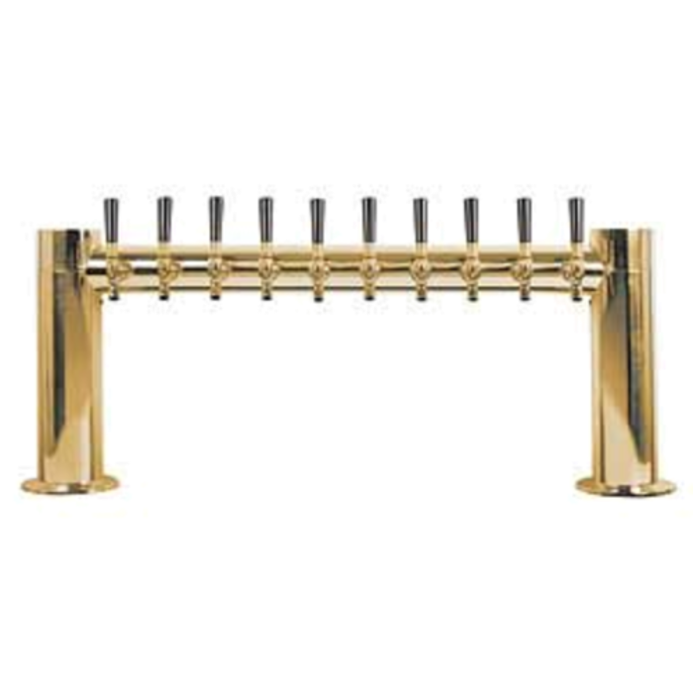 Metropolis "H" Draft Beer Tower, countertop, 38"W x 16"H, glycol-cooled (Kool-Rite™ integrated module), (10) PVD brass-plated stainless steel faucets (handles not included), 3" OC, 12" faucet clearance, (2) 4" dia. columns with 6" dia. bases, 304 stainless steel product lines & leak-proof shanks, includes cooling block & copper coolant lines, mounting gaskets & hardware provided, PVD brass finish, NSF'