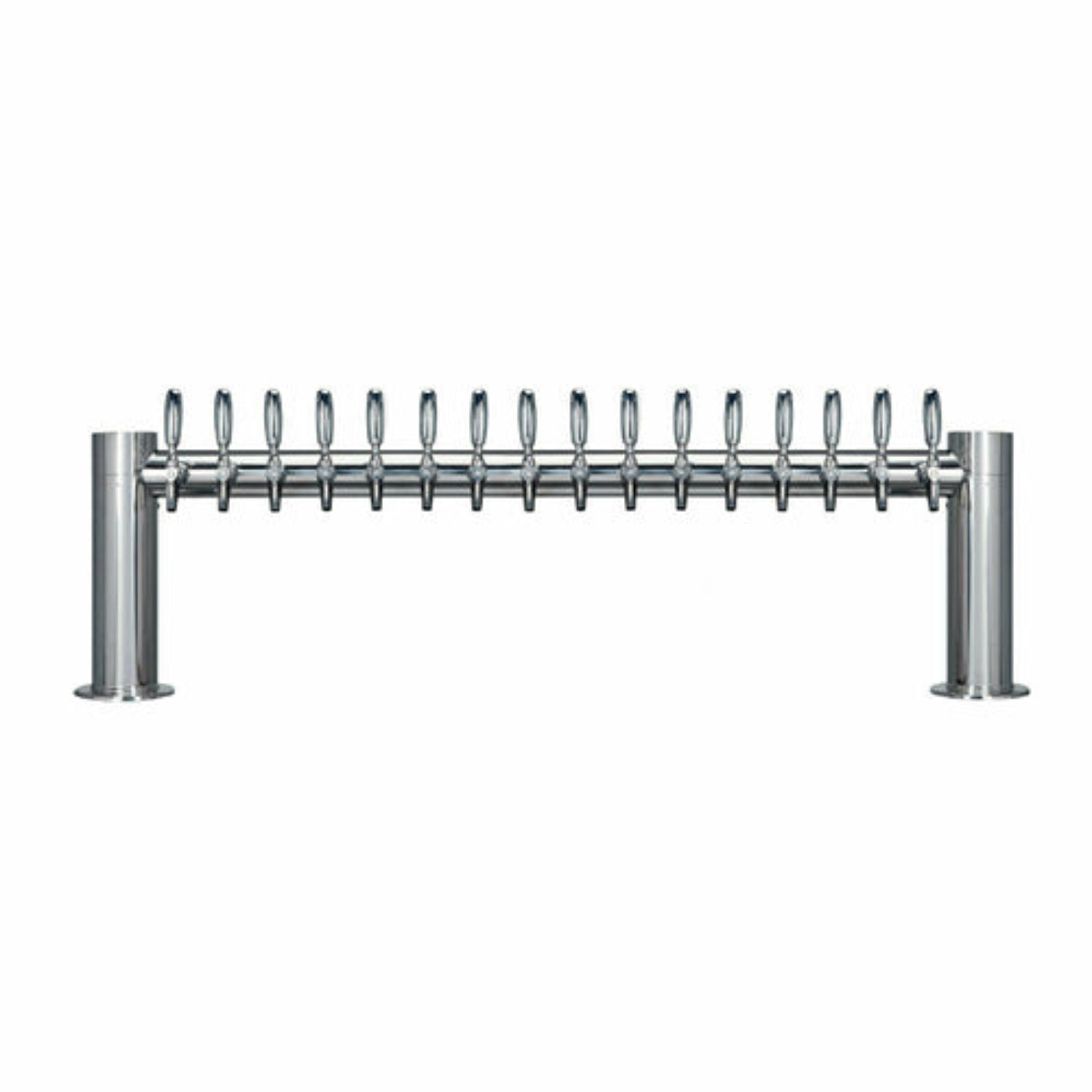 Metropolis "H" Draft Beer Tower, countertop, 56"W x 16"H, glycol-cooled (Kool-Rite™ integrated module), (16) 304 stainless steel faucets (handles not included), 3" OC, 12" faucet clearance, (2) 4" dia. columns with 6" dia. bases, 304 stainless steel product lines & leak-proof shanks, includes cooling block & copper coolant lines, mounting gaskets & hardware provided, polished stainless steel finish, NSF