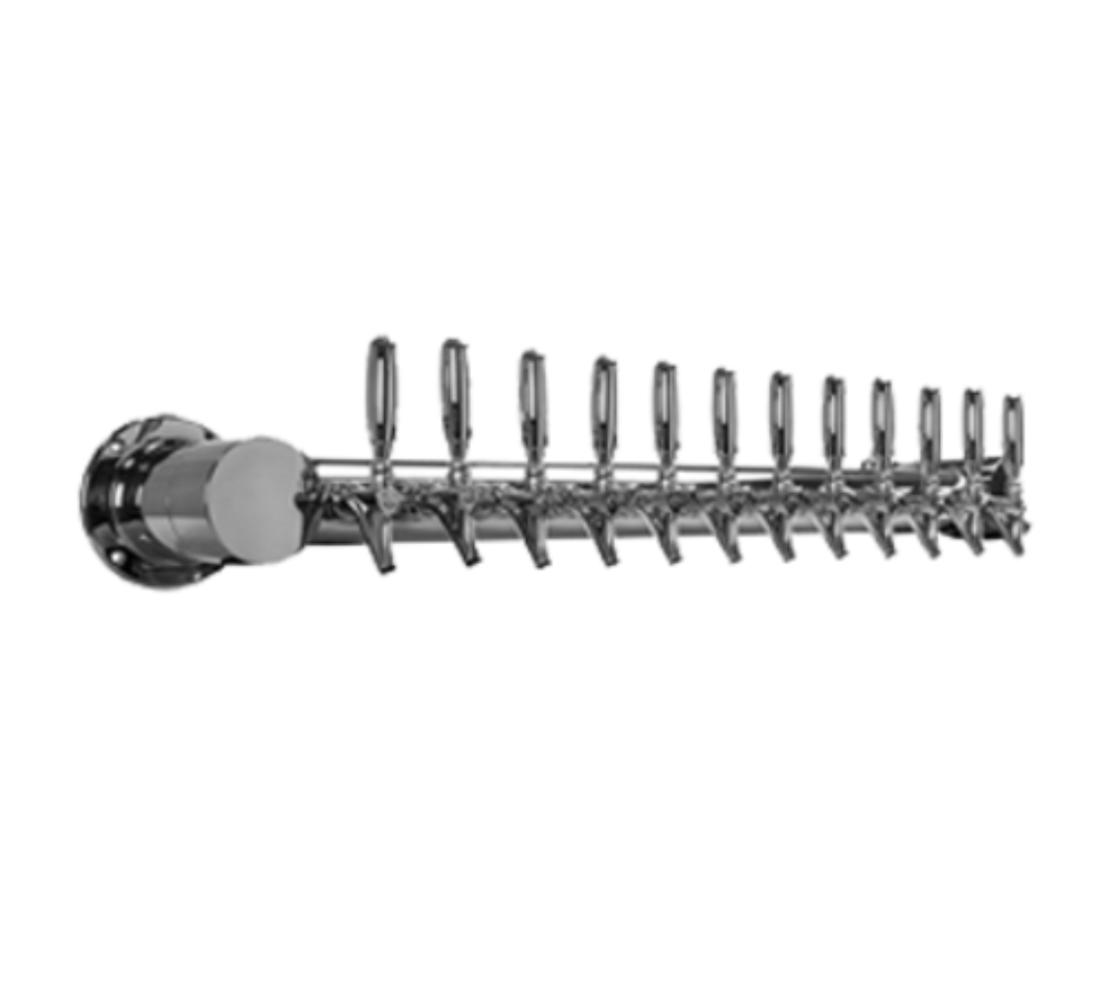 Metropolis "WM" Draft Beer Tower, wall mount, 44"W x 9"D, glycol-cooled (Kool-Rite™ integrated module), (12) 304 stainless steel faucets (handles not included), 3" OC, (2) mounting legs, 304 stainless steel product lines & leak-proof shanks, includes cooling block & copper coolant lines, mounting gaskets & hardware provided, polished stainless steel finish, NSF