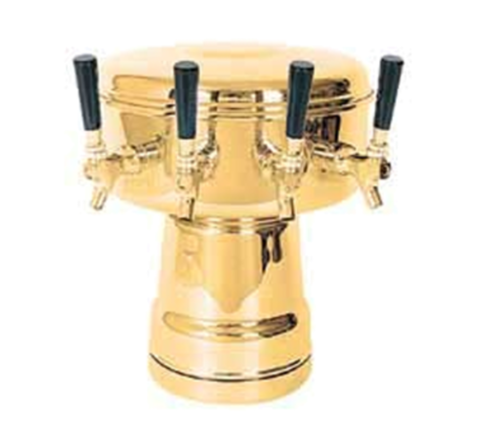 Mushroom Draft Beer Tower, countertop, 12" dia. x 15-5/16"H, air-cooled, (4) brass faucets (handles not included), 3-5/8" OC, 10" faucet clearance, 7-1/2" dia. base, polished brass finish