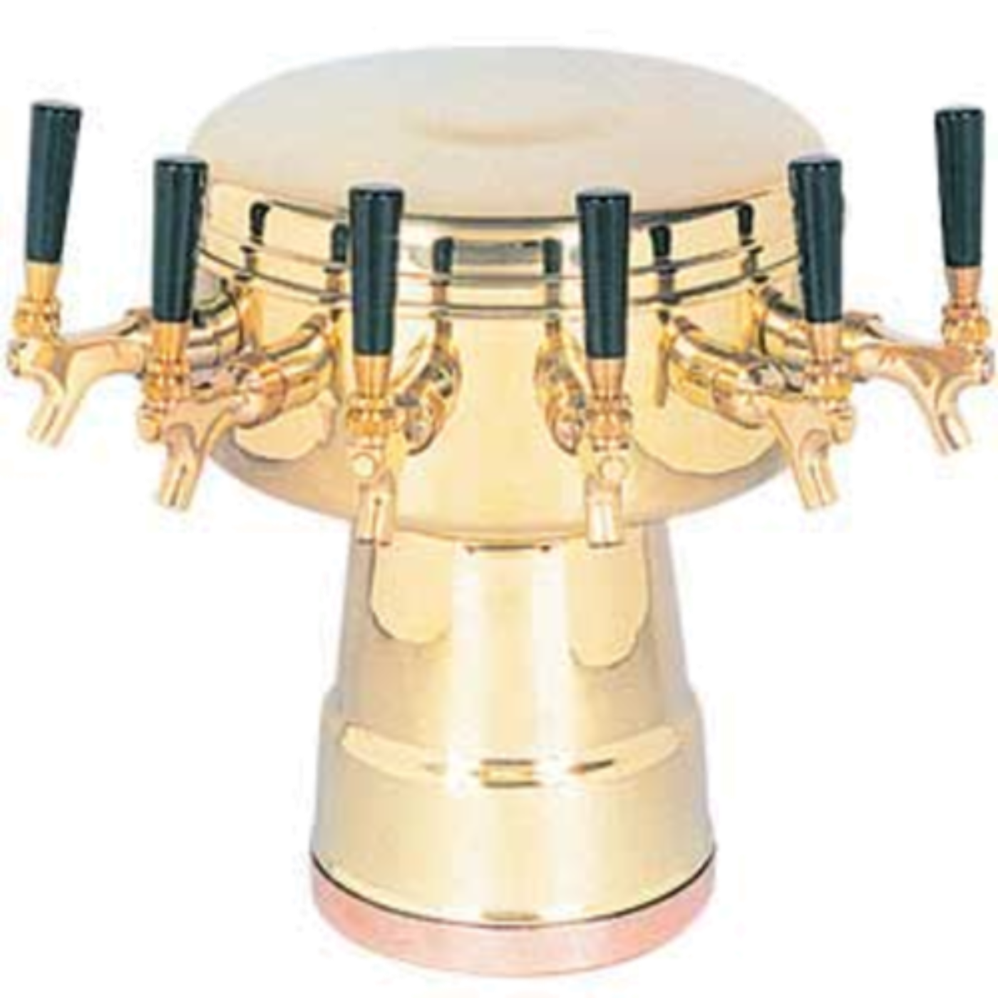 Mushroom Draft Beer Tower, countertop, 12" dia. x 15-5/16"H, air-cooled, (6) brass faucets (handles not included), 3-5/8" OC, 10" faucet clearance, 7-1/2" dia. base, polished brass finish