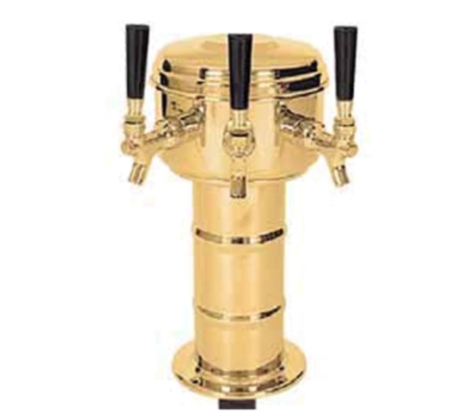 Mini-Mushroom Draft Beer Tower, countertop, 7-5/16" dia. x 14"H, glycol-cooled (Kool-Rite™ integrated module), (3) stainless steel faucets (handles not included), 5" OC, 10-1/4" faucet clearance, 6" dia. base, stainless steel product lines & shanks, copper coolant lines, polished brass finish, NSF