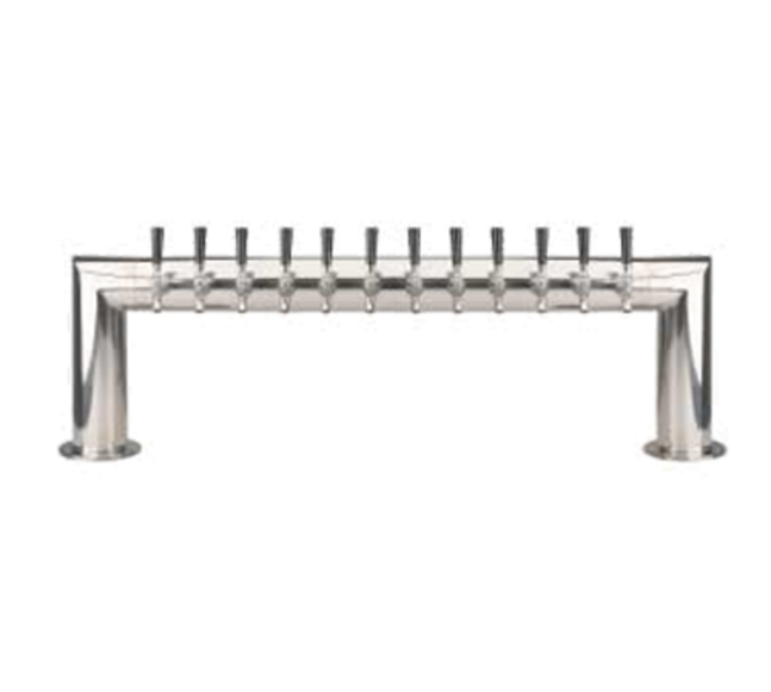 Pass-Thru Draft Beer Tower, countertop, 47"W x 14-1/4"H, glycol-cooled (Kool-Rite™ integrated module), (12) stainless steel faucets (handles not included), 3" OC, 10-1/2" faucet clearance, (2) 4" dia. columns with 6" dia. bases, stainless steel product lines & leak-proof shanks, includes cooling block & copper coolant lines, mounting gaskets & hardware provided, polished stainless steel finish