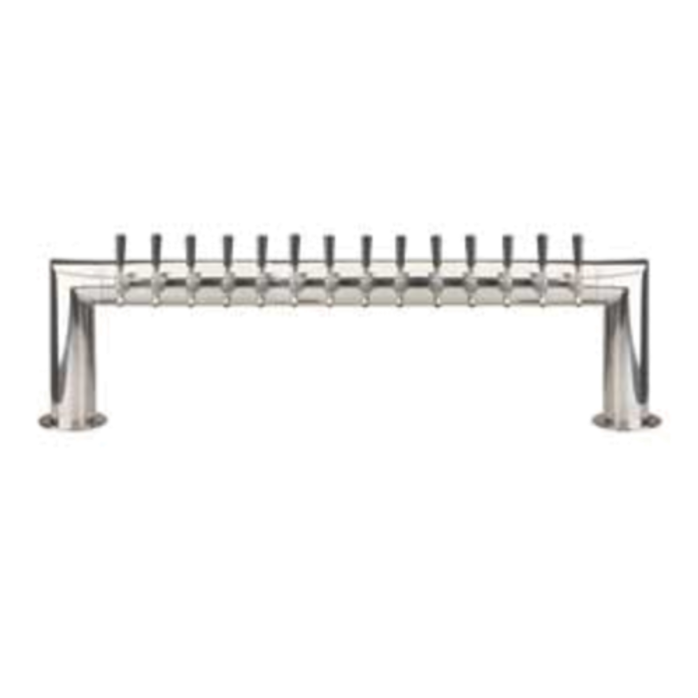 Pass-Thru Draft Beer Tower, countertop, 53"W x 14-1/4"H, glycol-cooled (Kool-Rite™ integrated module), (14) stainless steel faucets (handles not included), 3" OC, 10-1/2" faucet clearance, (2) 4" dia. columns with 6" dia. bases, stainless steel product lines & leak-proof shanks, includes cooling block & copper coolant lines, mounting gaskets & hardware provided, polished stainless steel finish