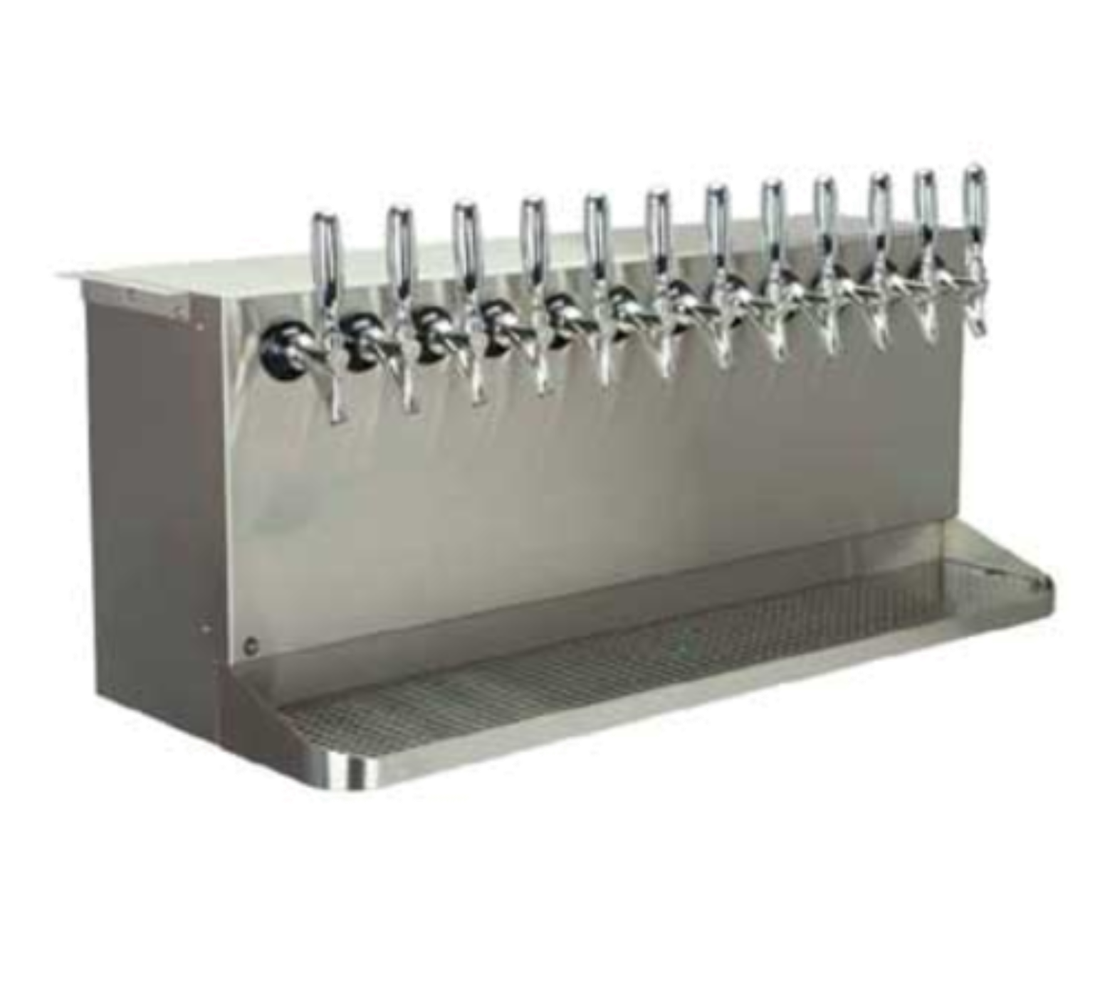 Draft Beer Dispenser, underbar with drip tray, 40"W x 16"H, glycol-cooled (Kool-Rite™ integrated module), (12) stainless steel faucets, 3" OC, 14" faucet clearance, stainless steel product line & copper coolant lines, removable front panel, integral drip tray with removable perforated insert, brushed stainless steel finish, NSF