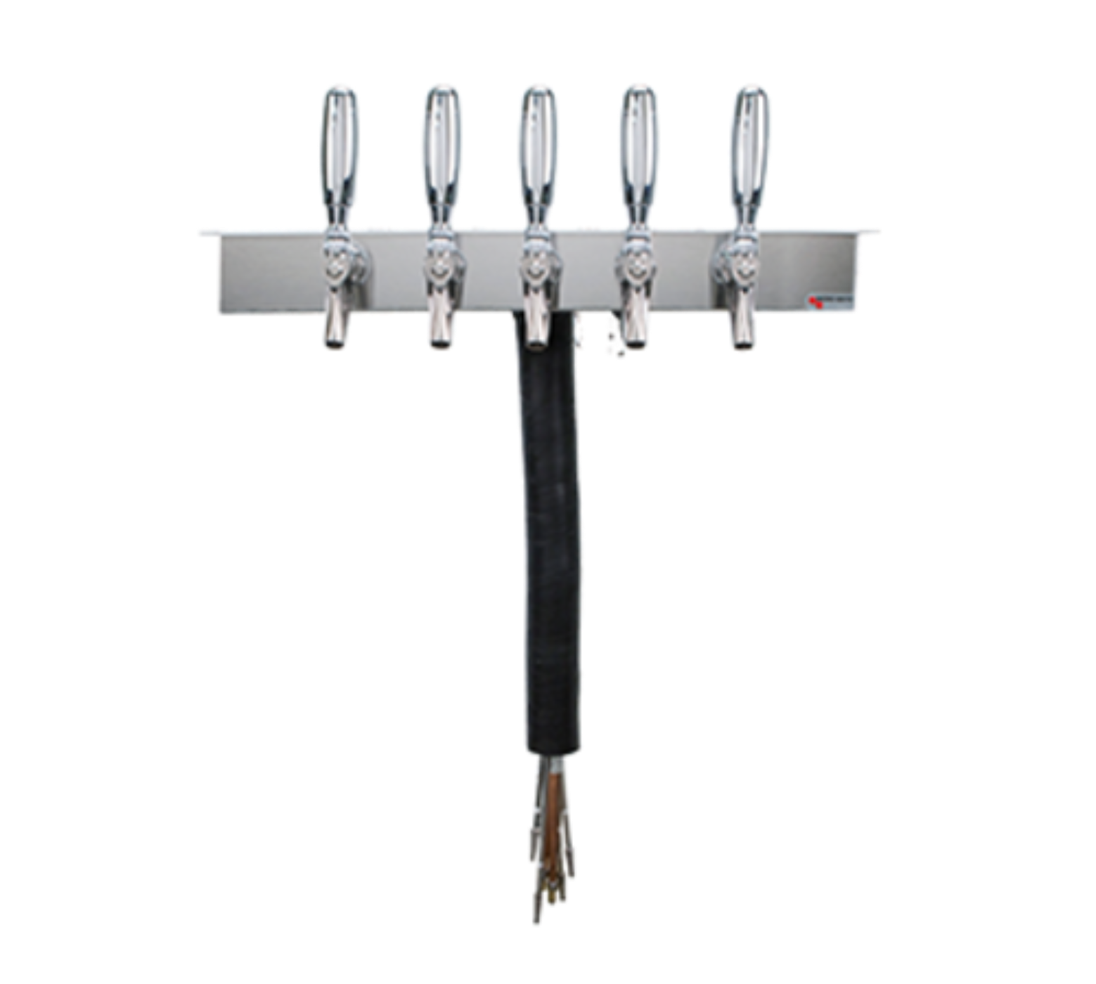Draft Beer Dispenser, underbar, 21-1/2"W x 2-1/2"H, glycol-cooled (Kool-Rite™ integrated module), (5) 304 stainless steel faucets (handles not included), 3" OC, 304 stainless steel product lines & leak-proof shanks, copper coolant lines, includes integrated mounting flanges, brushed stainless steel finish