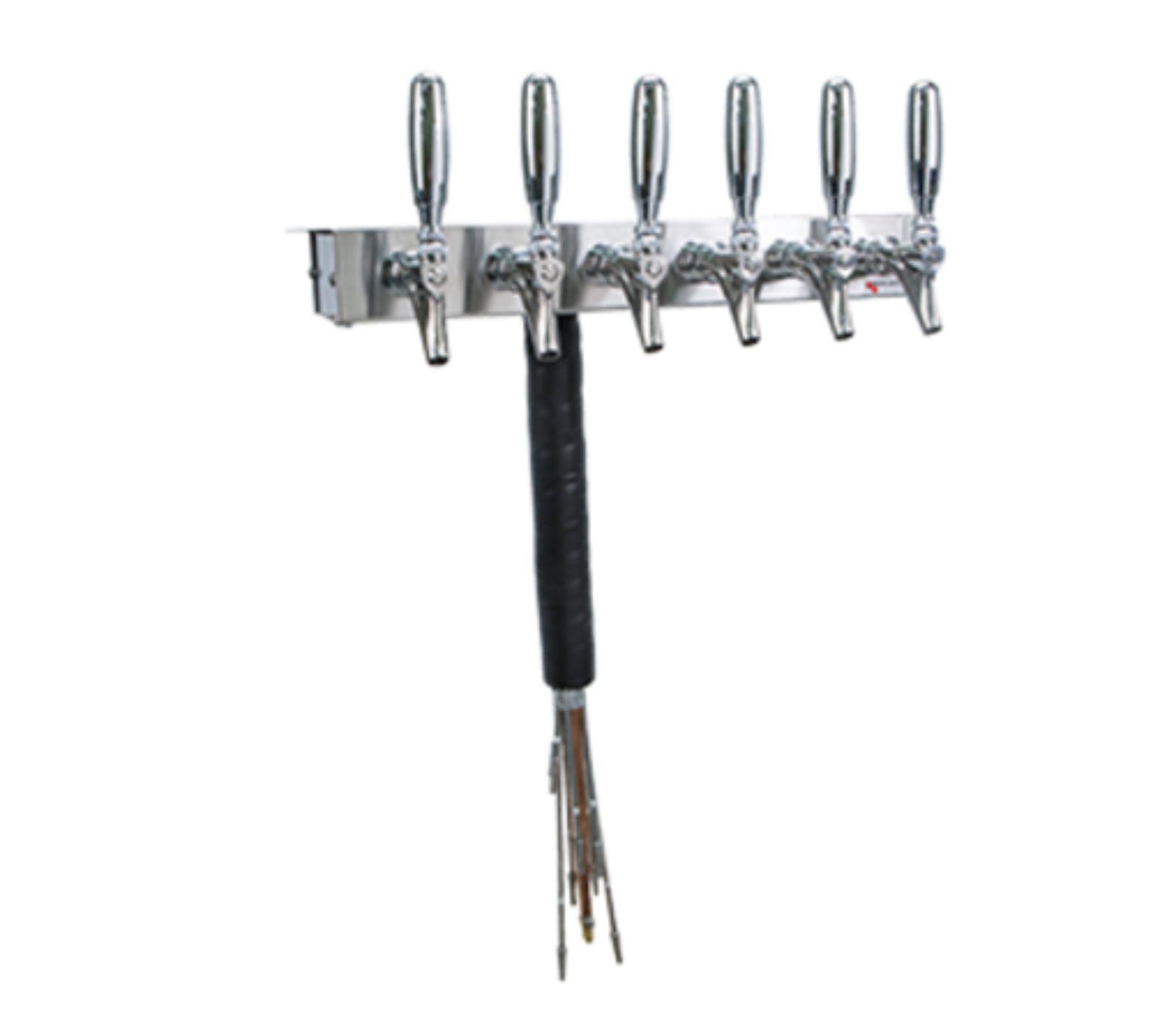 Draft Beer Dispenser, underbar, 21-1/2"W x 2-1/2"H, glycol-cooled (Kool-Rite™ integrated module), (6) 304 stainless steel faucets (handles not included), 3" OC, 304 stainless steel product lines & leak-proof shanks, copper coolant lines, includes integrated mounting flanges, brushed stainless steel finish