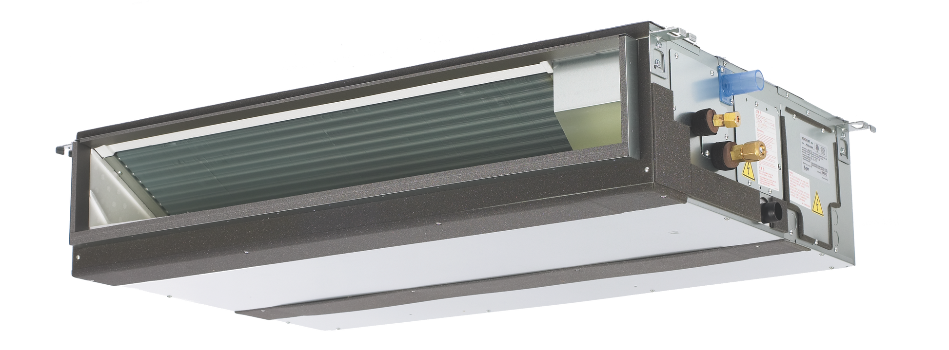 Mid-static design ensures efficient airflow in larger rooms or commercial spaces.