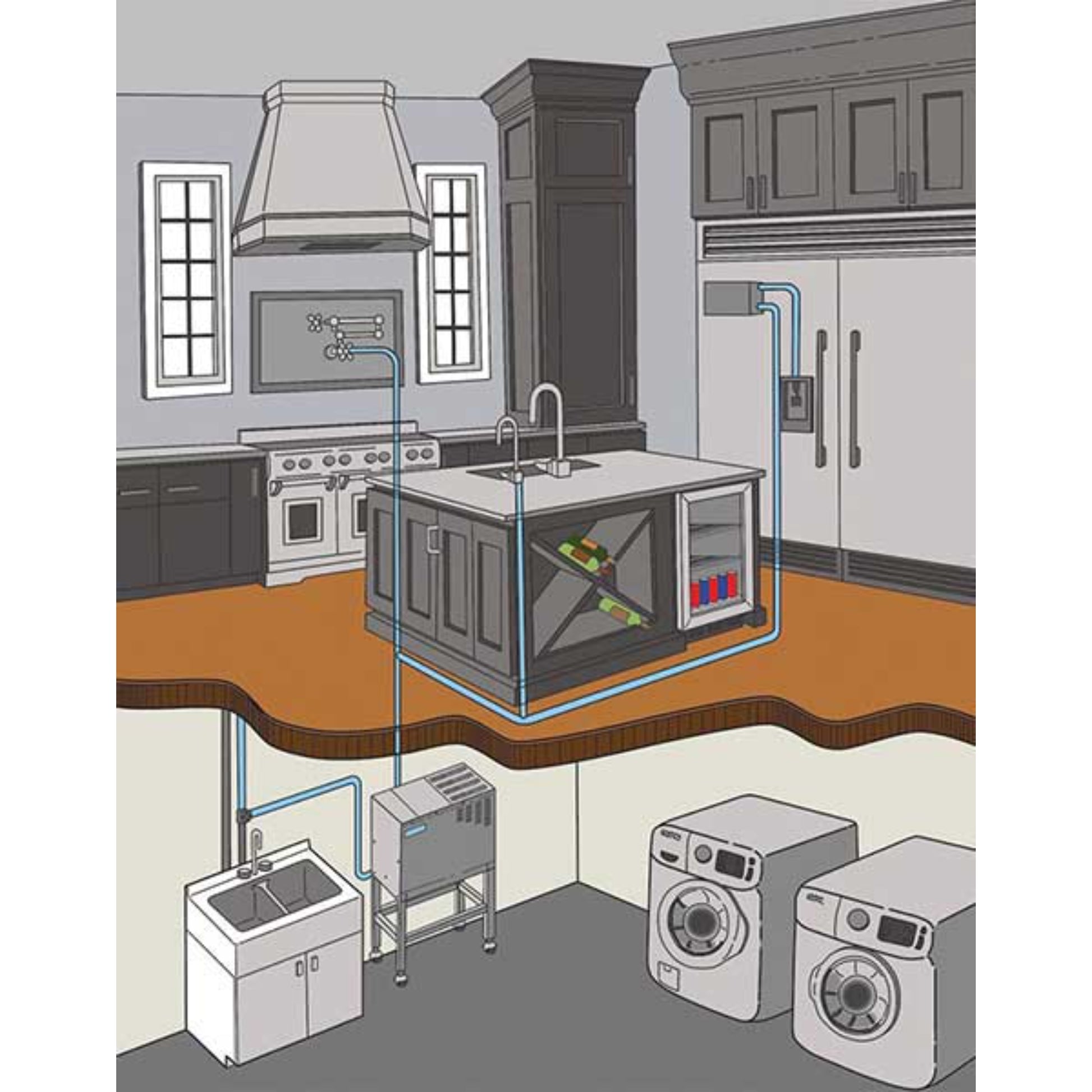 The built-in pump on the Mega Classic allows it to conveniently deliver water to a dedicated kitchen spigot, pot filler, icemaker, and refrigerator from a remote location such as a basement, laundry room, or garage (depending on local conditions).