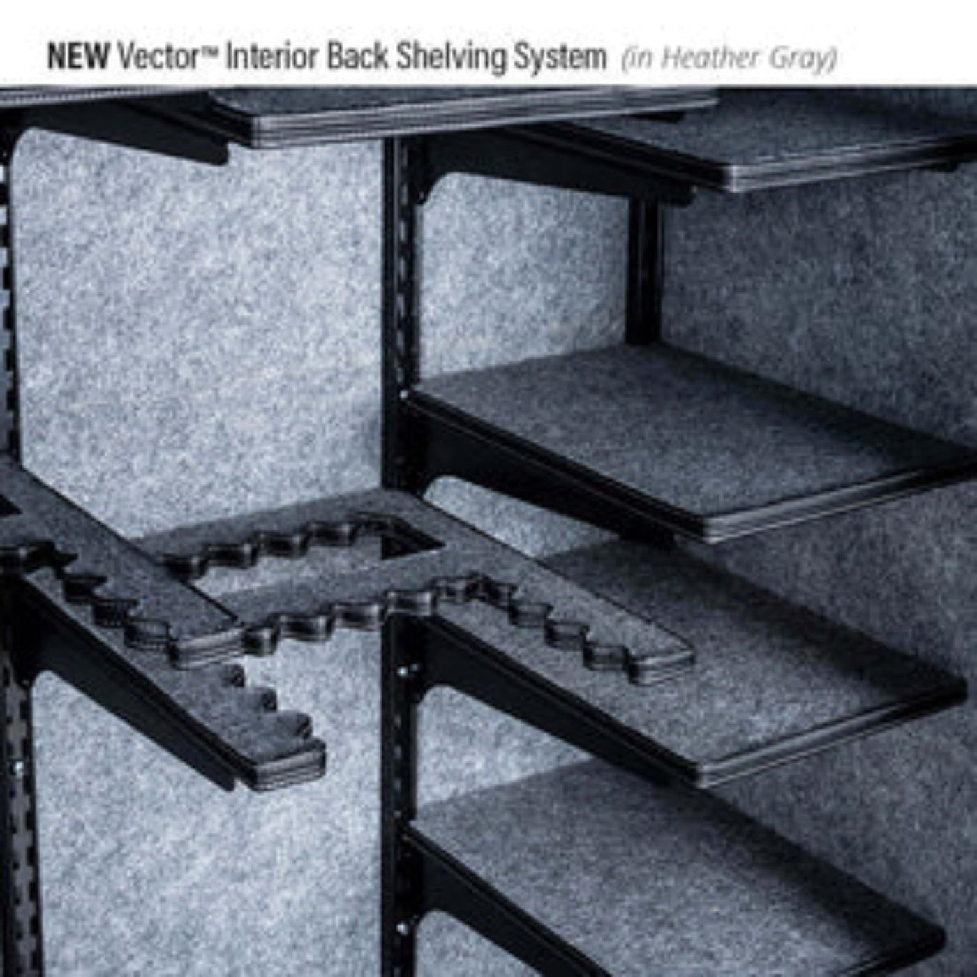 The Rhino KGX6736 now comes with Rhino's NEW Vector™ Interior. This Vector™ System uses the back wall of the interior to adjust your interior shelving and gun rack, which allows you to maximize storage space inside your safe. This New System is fully adjustable to fit your needs and provide ultimate flexibility. The entire interior is fully upholstered with a interior carpet lining.