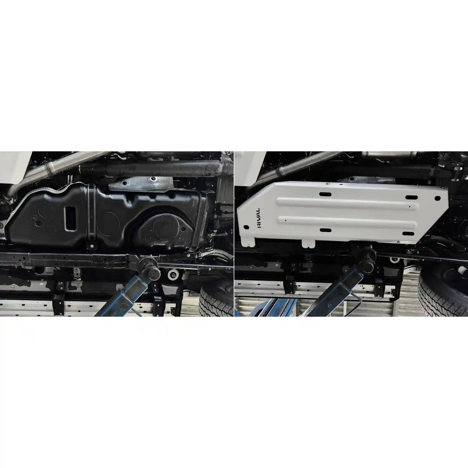A: It protects the fuel tank from rocks, debris, logs and rough‑terrain impacts — guarding one of the vehicle’s most vulnerable underbody components.