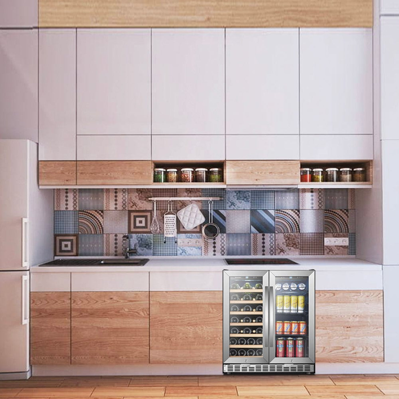 A wine cooler or a beverage refrigerator? The Sinoartizan ST-66B wine and beverage cooler refrigerator, both separate and combined in one unit, with double temperature control for dual-zone, holds greater capacity and delivers a diversity of functionality over its 30 inch width size. Button-free design for easy operation, with double mini built-in electric fans, stable refrigeration and no-vibration, conveying cold air to every corner, making every bottle or can of wine or beverage at an appropriate temperature. Whether you are a wine lover or a beverage enthusiastic, this wine and drink fridge will be a great solution.
