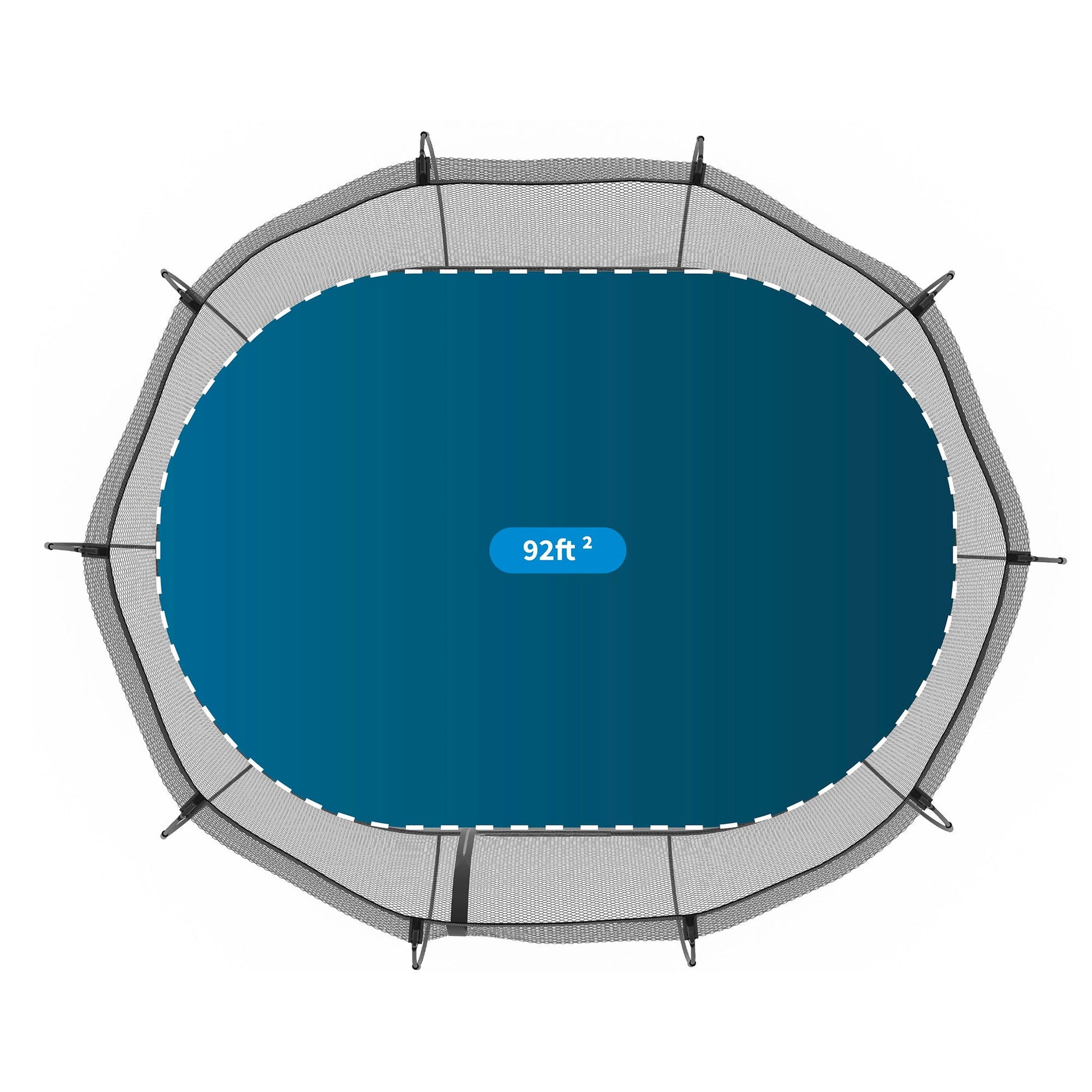 The trampoline is designed for active jumpers and provides enough space to perfect their trampoline tips and tricks. Providing 92 square feet of jumping freedom, this large oval trampoline is excellent for families and kids of all ages who weigh up to 220 pounds. A great way to help tire out children of all ages with safety and durability put into consideration.