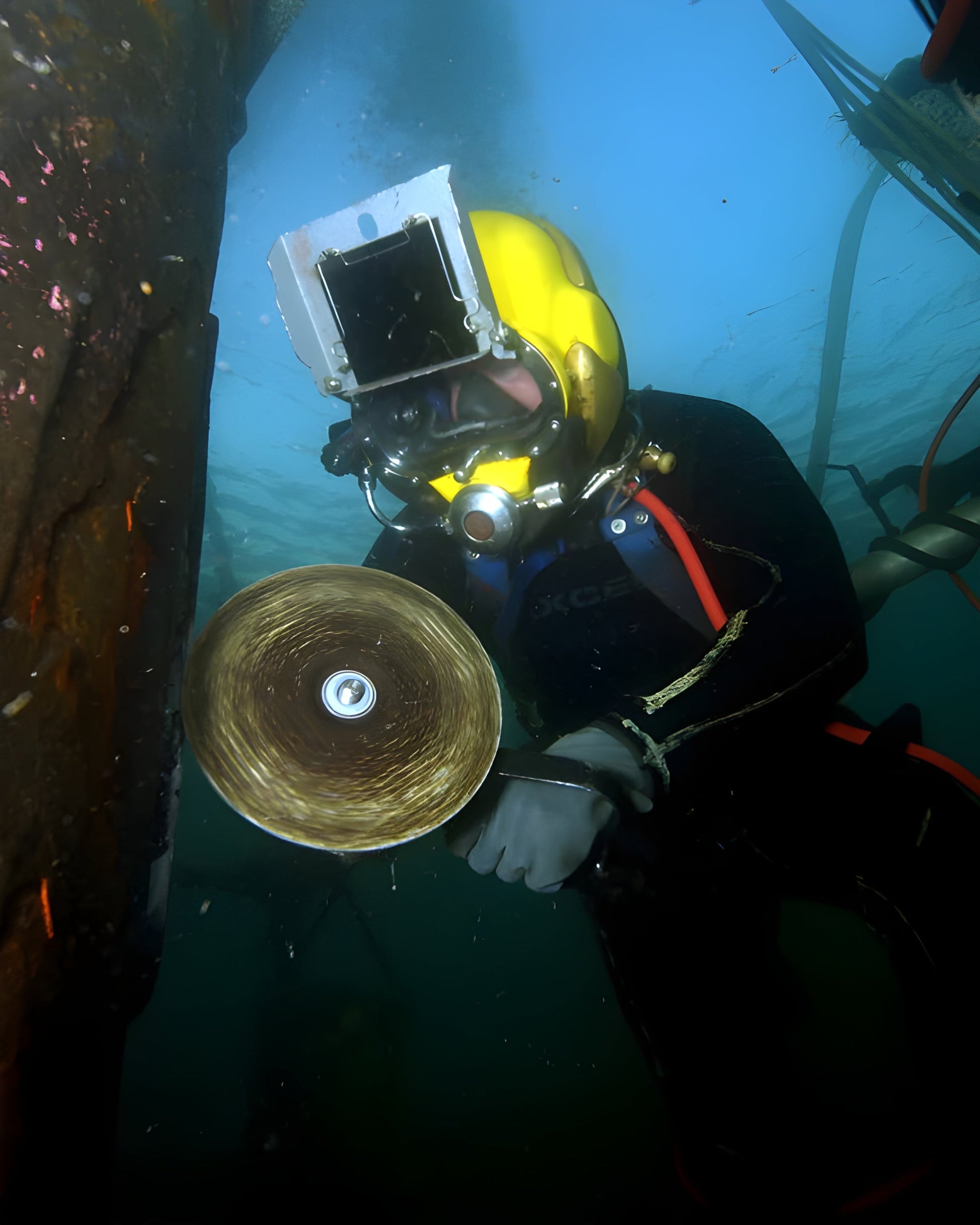 A: It is ideal for grinding metal, cutting marine growth, removing corrosion, and prepping surfaces for underwater repairs.