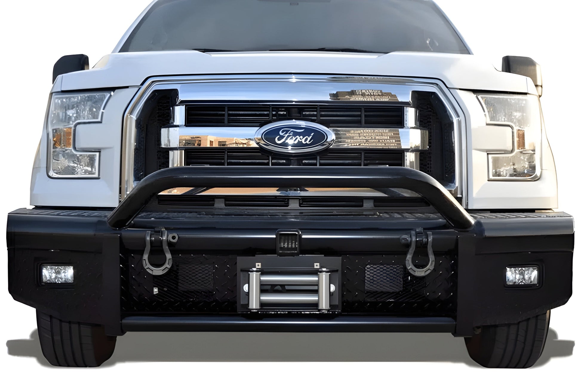 A: The Steelcraft HD Bullnose Front Bumper offers far superior protection with its heavy-duty construction, winch compatibility, and rugged design, making it ideal for off-roading and heavy-duty use. It also gives your Ford F150 a more aggressive and commanding presence compared to the stock bumper.