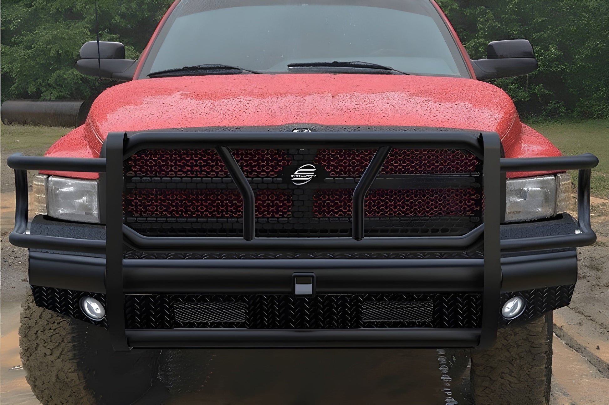 A: Made from high-strength steel with a black powder-coated finish, this bumper offers excellent protection and long-lasting performance. The built-in receiver hitch allows for additional towing capabilities, making it a practical and rugged upgrade for your Dodge Ram truck.