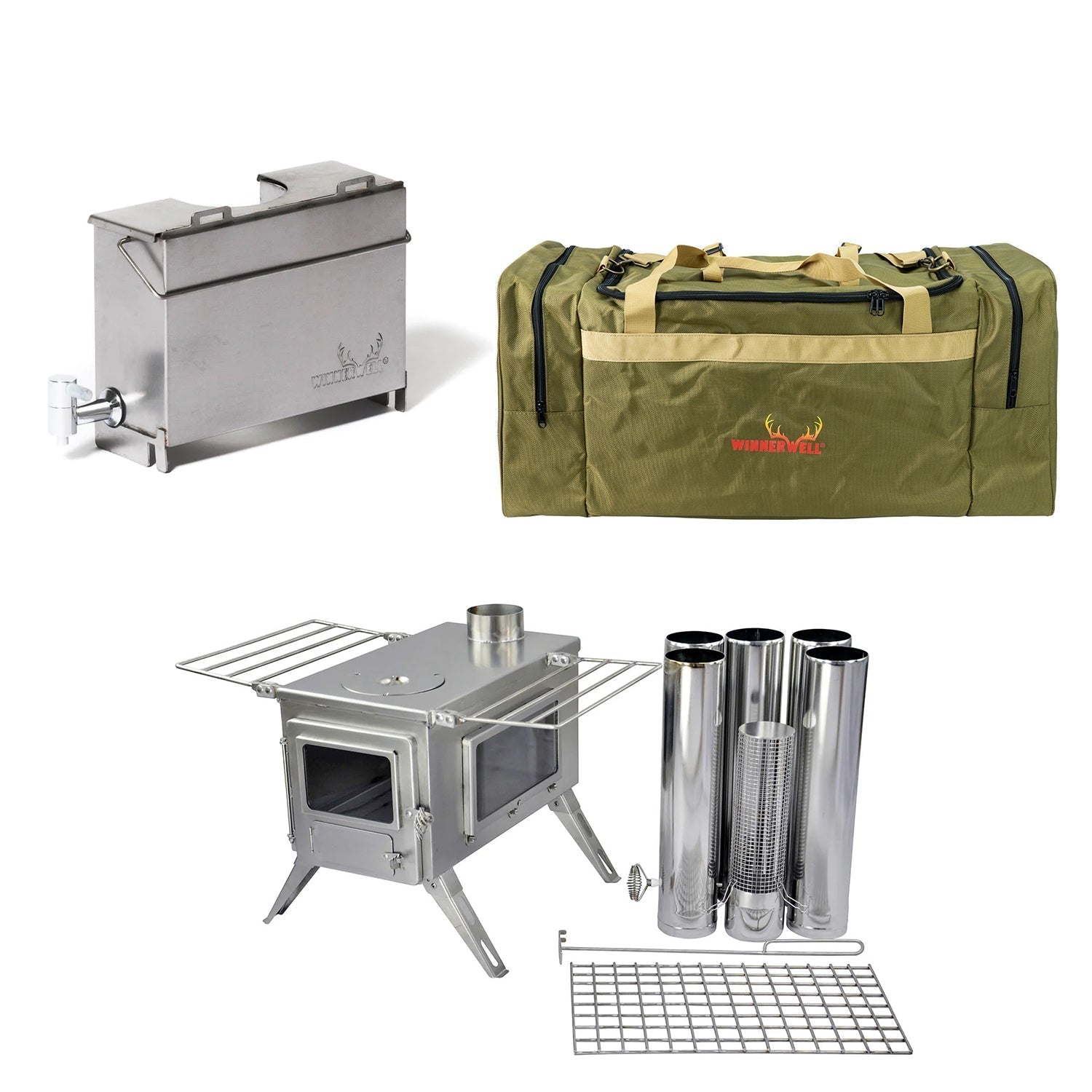 A: The Winnerwell Nomad View - Large Basic Bundle includes the Nomad View stove and essential accessories, offering a complete heating solution for camping or off-grid living, with a large fire-view window for enhanced ambiance.