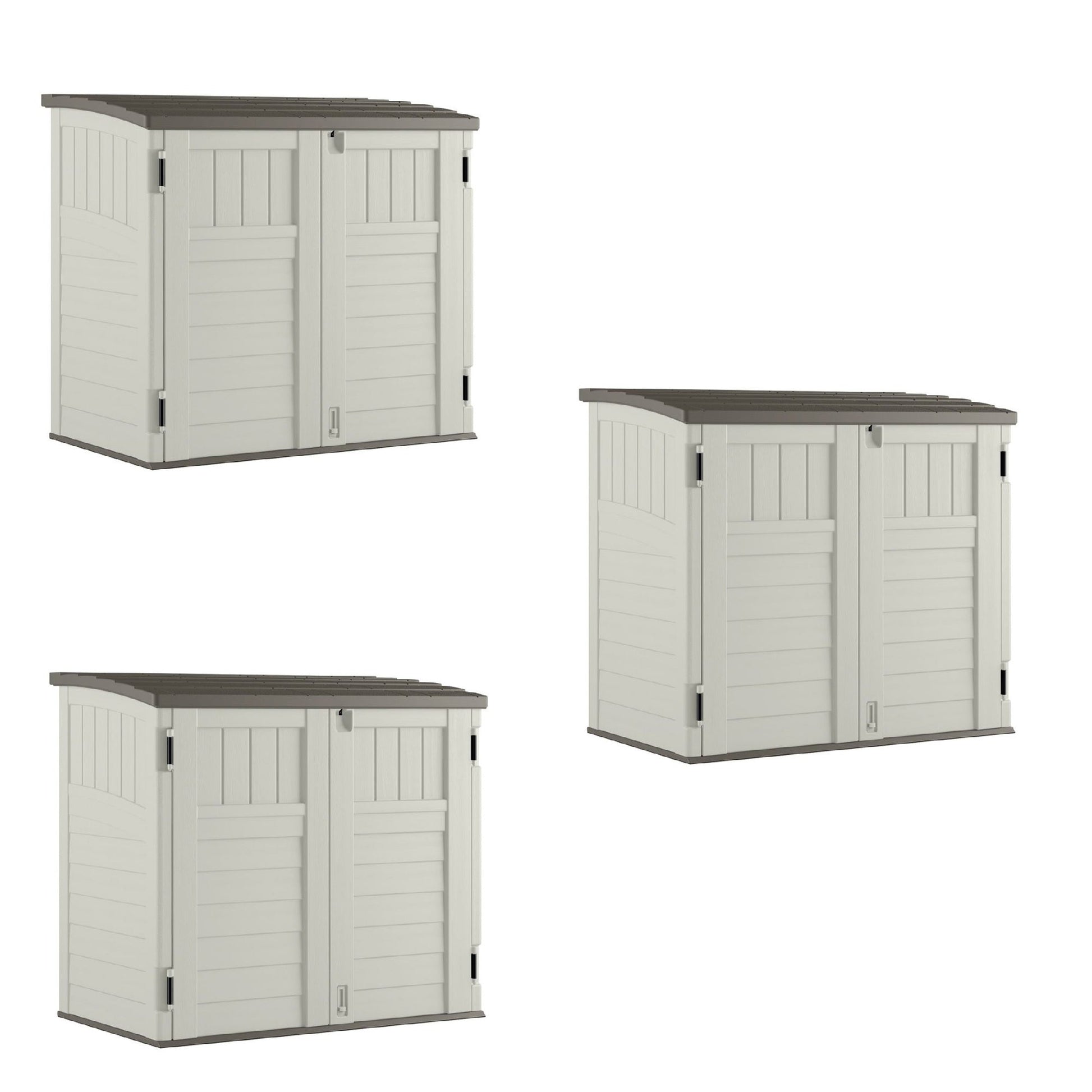 This 3 pack of Suncast Resin Horizontal Outdoor Storage Shed brings all the goodies from your yard and stores them better than you could ever imagine.