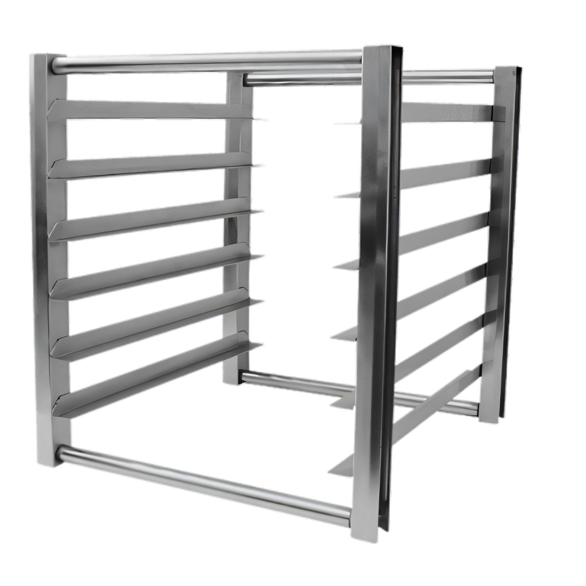 Half Size Pan Rack, 21"W x 24"D x 22-1/2"H, fits in pizza prep or solid door refrigerators & freezers, 304 stainless steel construction, resists corrosion in high moisture refrigerated environments, (6) full size pan (18"x26") capacity, KD